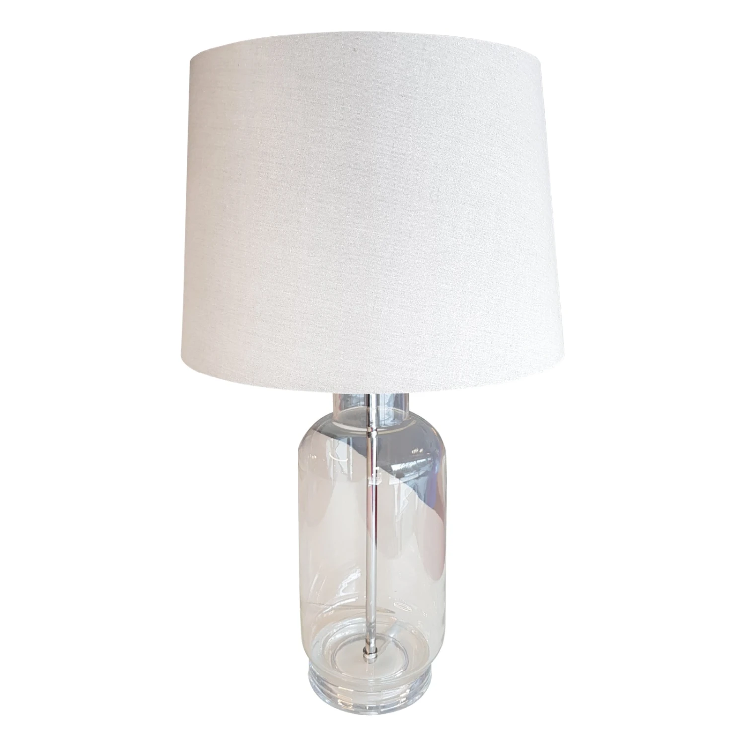 Kirkasta lasia oleva pullon muotoinen uniikki jalka kiinnittää takuulla katseet tähän muuten pelkistettyyn tunnelman luojaan!
