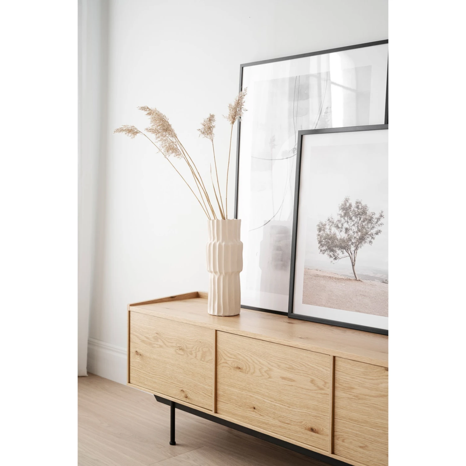 Breverton-tason ovikaapeissa on siirreltävät hyllyt, joiden johdosta esineiden sijoittelu onnistuu paremmin. Mustat jauhemaalatut metallijalat antavat luonnonväriselle kalusteelle särmää ja niiden säädettävät jalkaosat helpottavat kalusteen paikalleen sijoittamista.