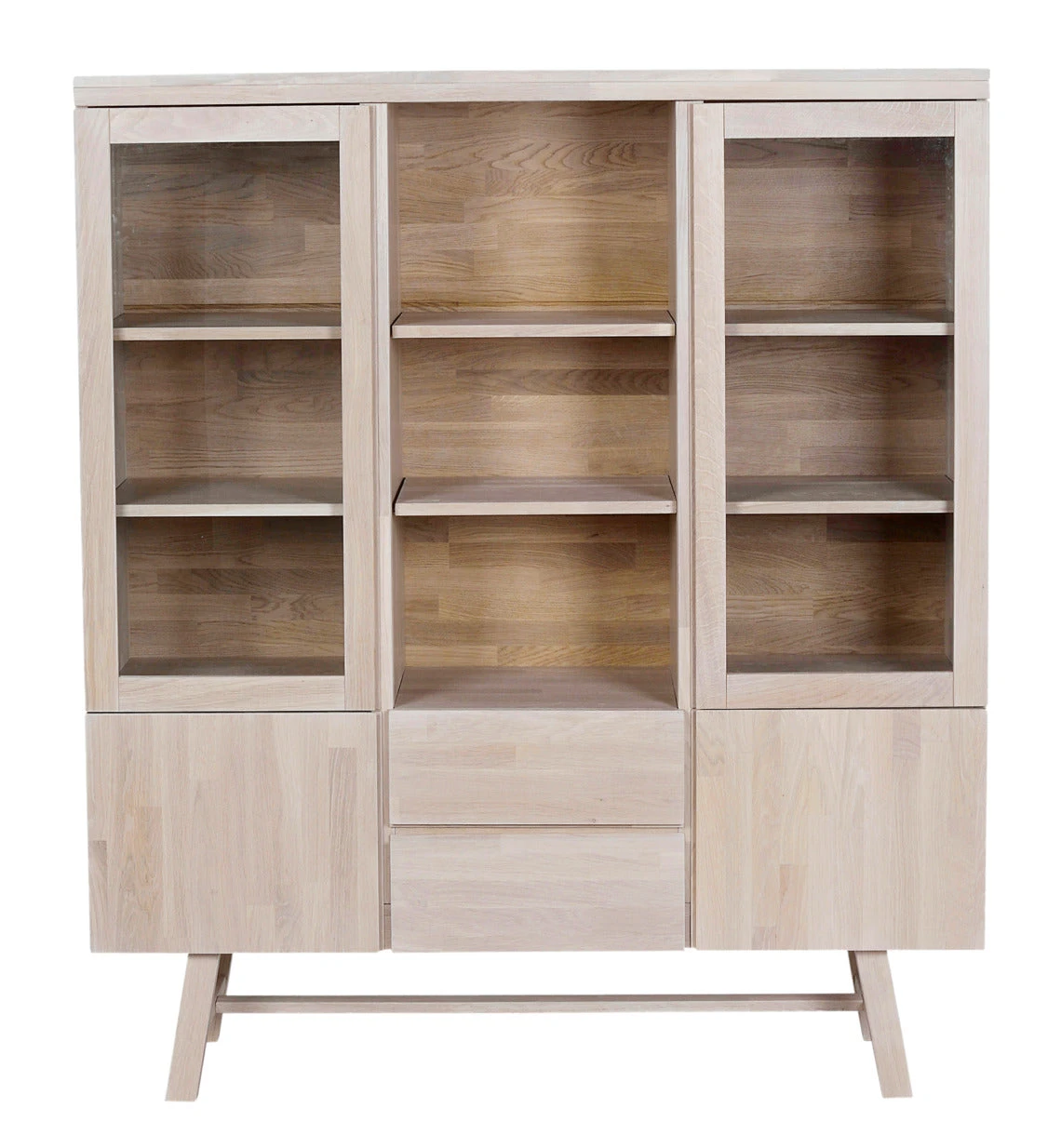 Massiivitamminen Brooklyn-vitriini on upean näköinen säilytysratkaisu kodin eri tiloihin. Vitriini vangitsee katseita ja on samalla verraton tilaihme monipuolisten säilytysmahdollisuuksiensa ansiosta. Lasiovien taakse saa näyttävästi koriste-esineitä ja käyttöesineille, sekä astioille on lisäksi käytännöllistä avohyllytilaa. Tavarat saa myös järjestettyä katseilta piiloon vitriinin alaosaan. Brooklyn-vitriinin ovissa ja laatikoiden etulevyissä on Soft Close -mekanismilla toimivat vaimentimet, joiden ansiosta ne sulkeutuvat hitaasti.