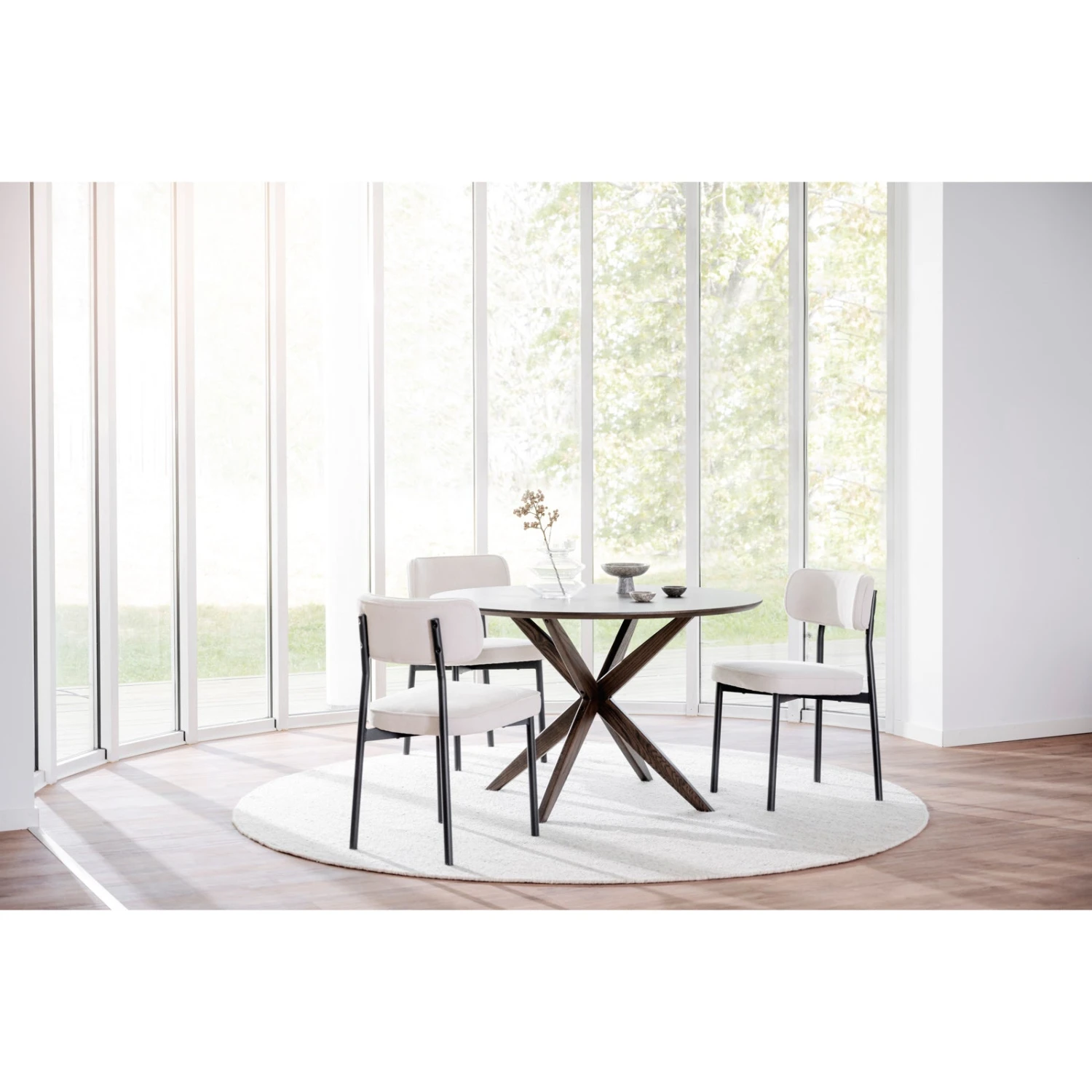 Pyöreä Calverton-ruokapöytä on moderni ruokapöytä, joka on suosittu valinta erityisesti skandinaavistyylisiin koteihin, joissa ruokapöytä on näyttävä osa sisustusta. Ruokapöydässä on ainutlaatuisesti muotoiltu design-jalka joka vangitsee katseet.