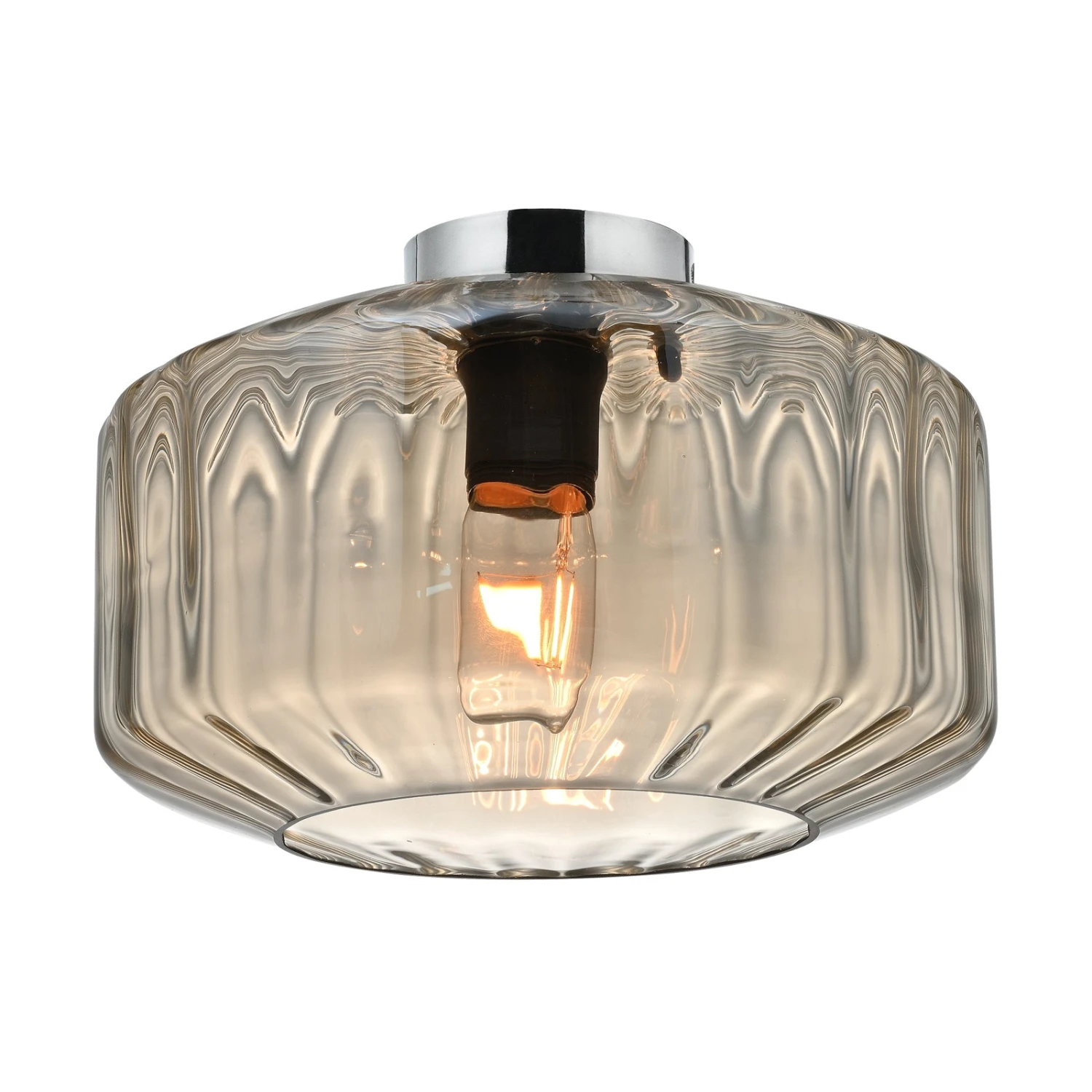 Design by Grönlundin kaunis lasinen Cardigan-kattoplafondi luo pehmeää yleisvaloa huoneeseen. Valaisimen kupu on kaunista konjakkilasia ja siinä on aaltoileva loiva vekkikuvio, joka heijastaa kauniin kuvion kattoon. Cardigan-plafondissa on hyvä valoteho, joten se sopii valaisimeksi niin olohuoneeseen, käytävälle kuin makuuhuoneeseenkin.