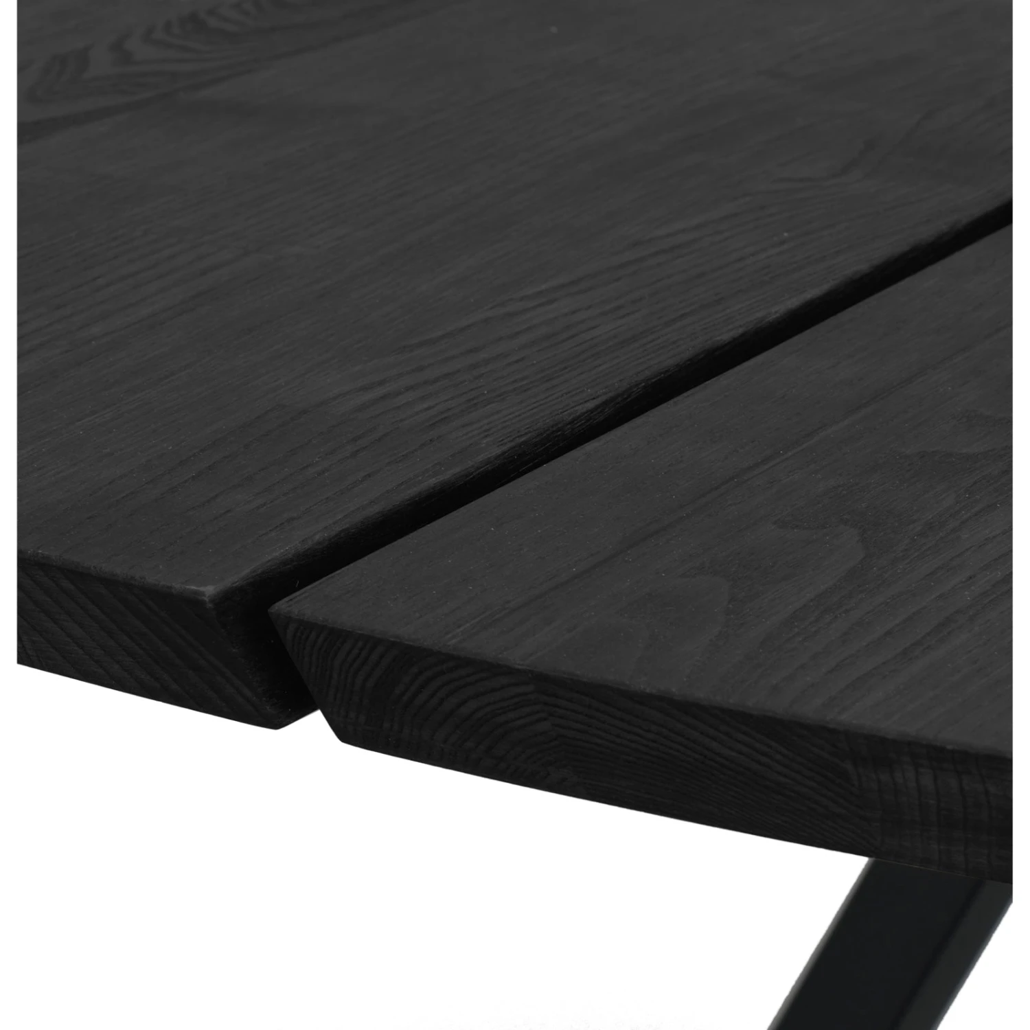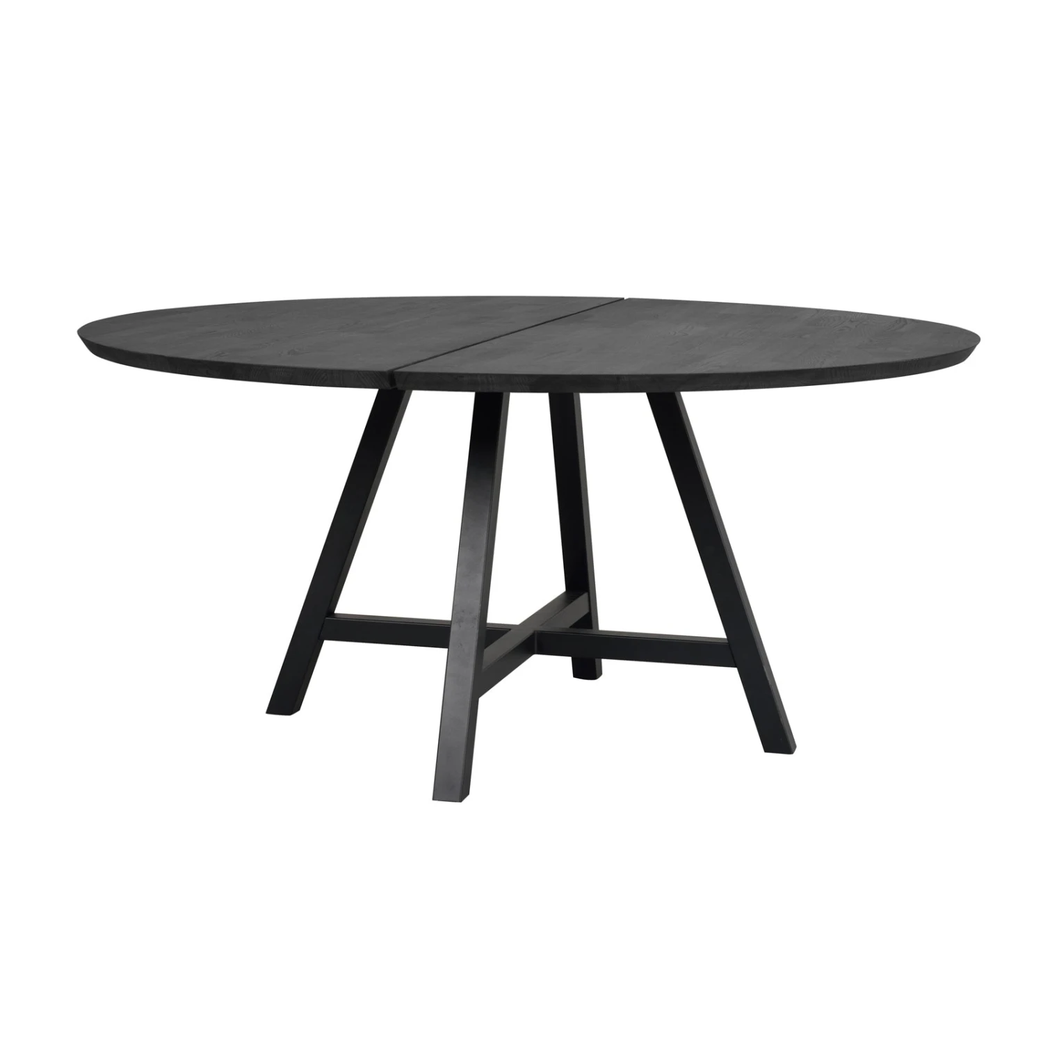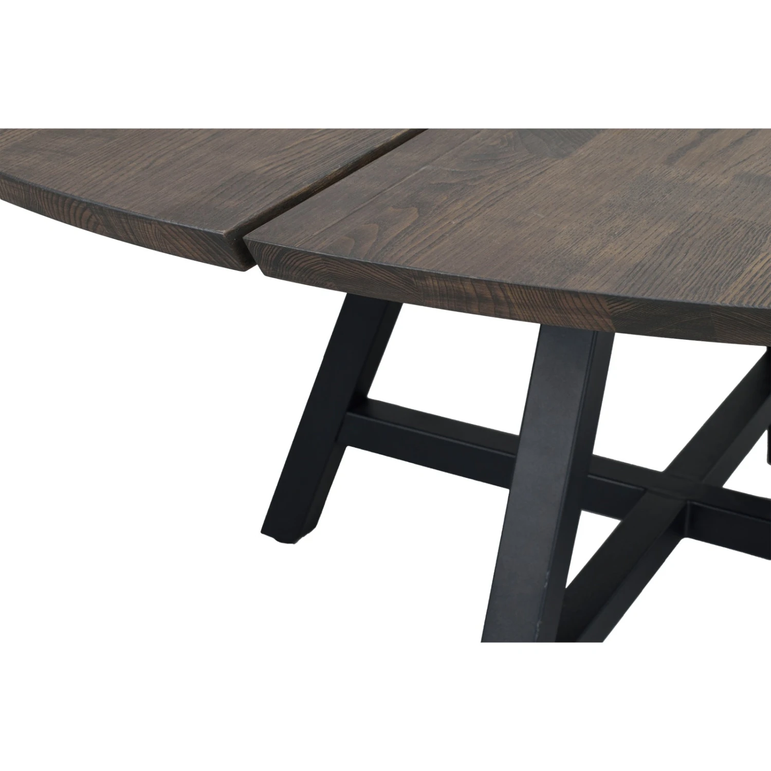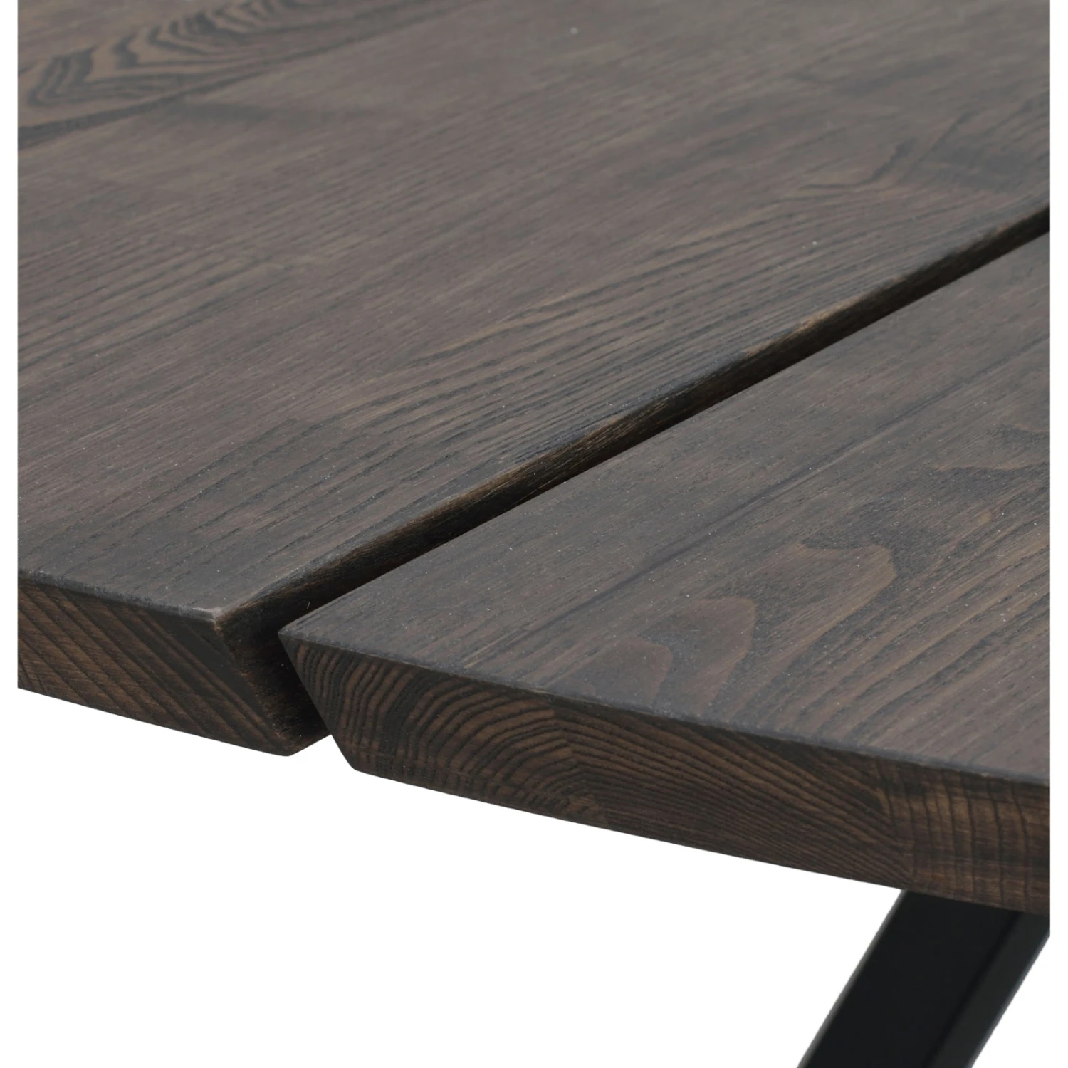 Carradale-pöydän pöytälevy on laadukasta massiivitammea, joka on jaettu tyylikkäästi kahteen osaan. Pyöreä Carradale on tyylikkään yksinkertainen, mutta sen jykevät, mustat metallijalat tuovat ulkonäköön särmikkyyttä. Nämä tukevat A-muotoiset jalat pitävät pöydän vakaasti pystyssä.