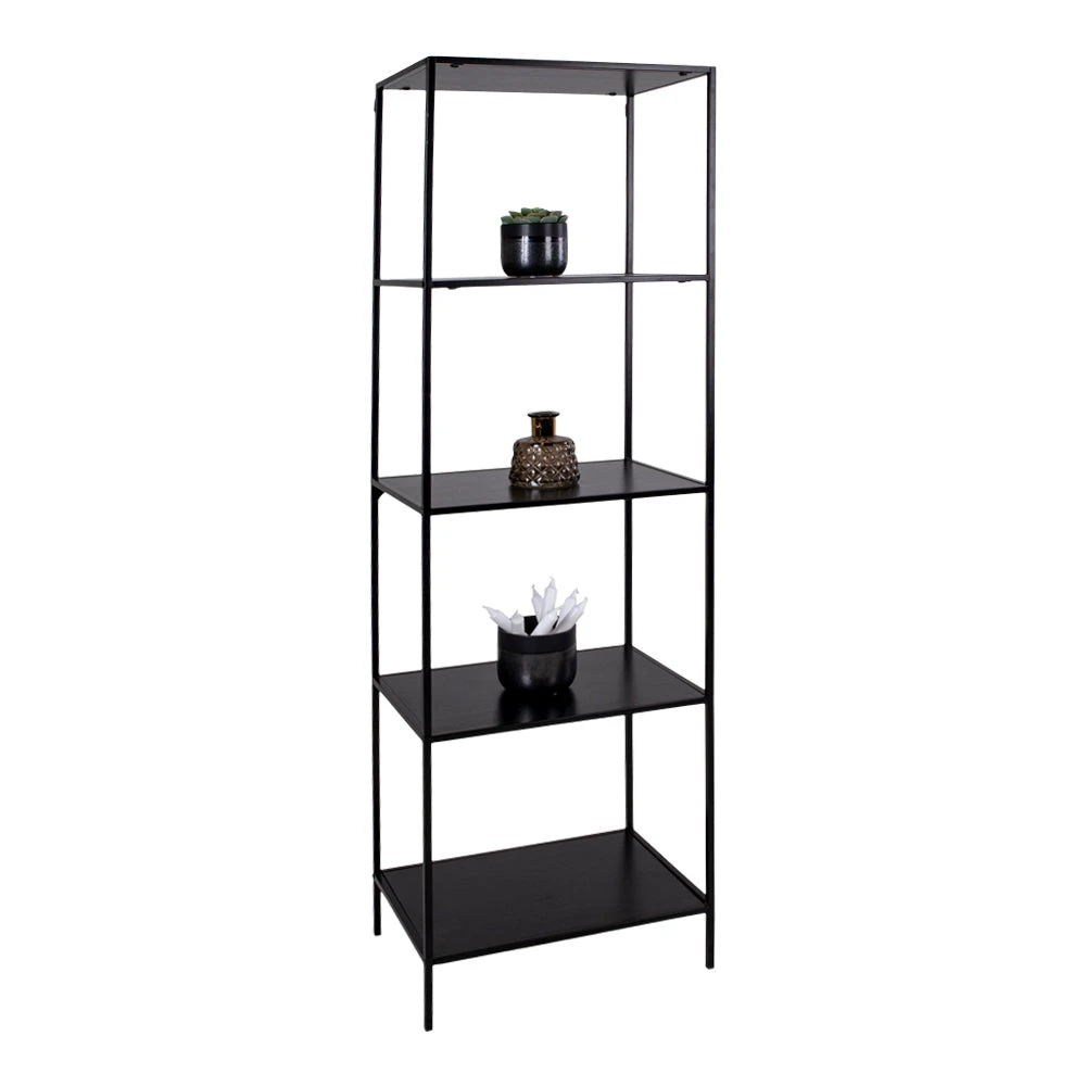 Avohyllyn kapea runko antaa sille hyvin keveän ilmeen. Hyllytasot ovat mustaa tai tammenväristä huonekalulevyä ja runko on mustaksi maalattua metallia.