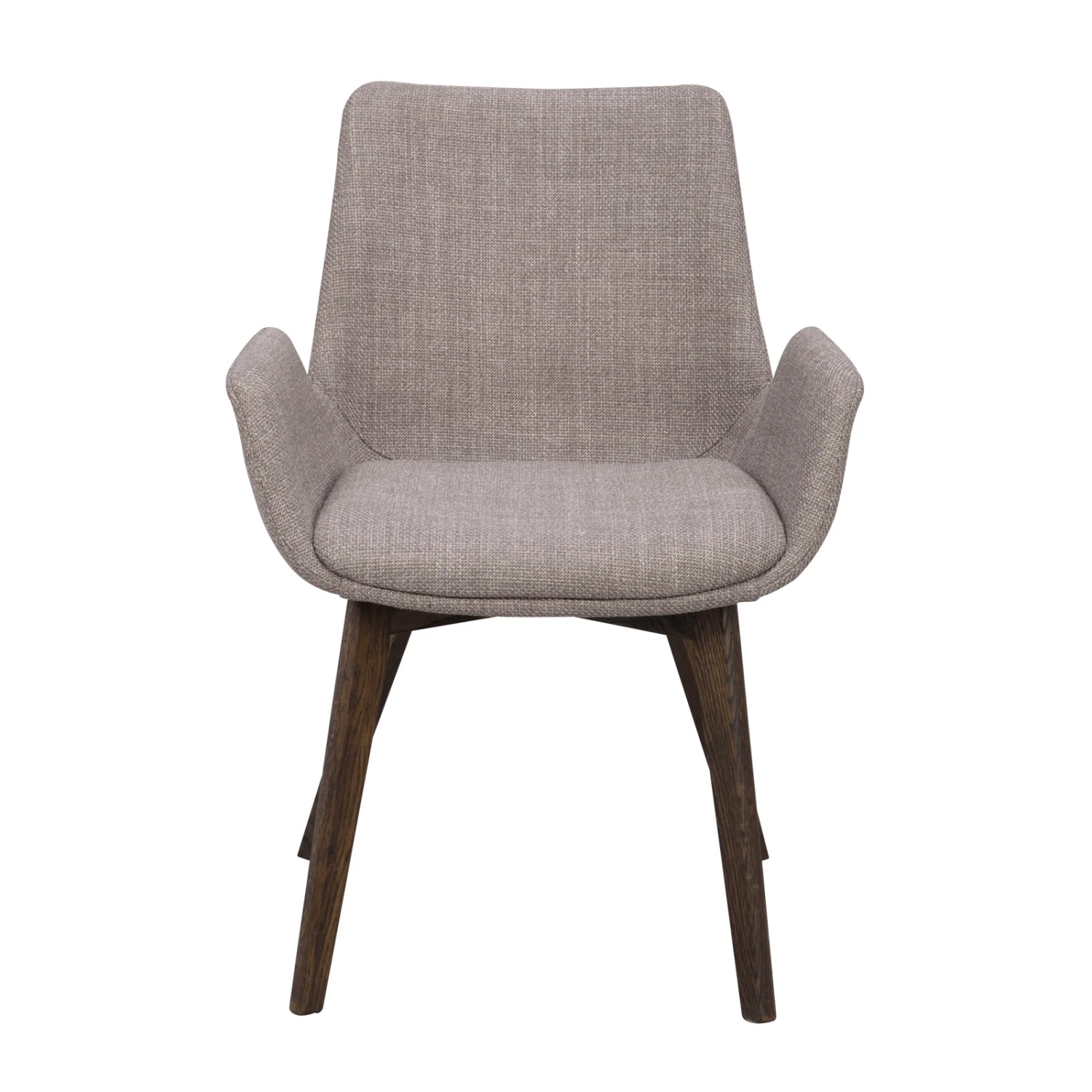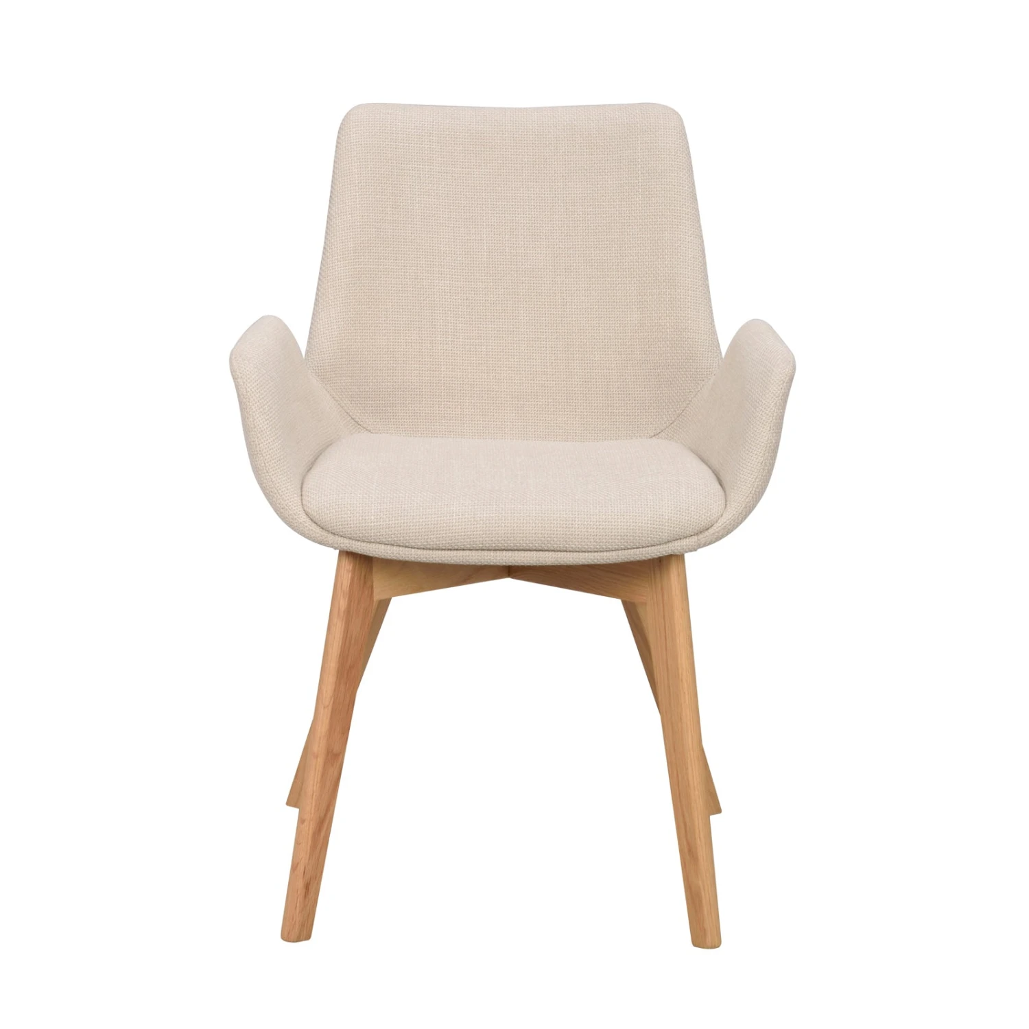 Taivutetussa Drimsdale-tuolissa on kestävät tammijalat, jotka tuovat ulkoasuun ajattomuutta ja FSC-sertifioidusta puusta valmistettuna tekevät tuolista myös vastuullisen valinnan. Tuolin istuinosa on pehmustettu vaahtomuovitäytteellä ja tuoli on ympäriverhoiltu kestävällä, helposti puhdistettavalla kangasverhoilulla, joten tuoli kestää hyvin kulutusta. Saatavana kolmella kankaalla ja neljällä massiivipuujalkavärillä.