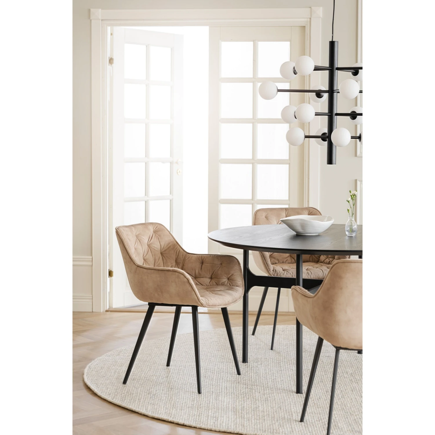 Gilroy-tuoli on moderni samettituoli, jolla loihdit ruokailutilaasi ripauksen luksusta. Samettisen pehmeä ja kuppimainen Gilroy-tuoli on miellyttävän tuntuinen ja muotoilunsa ansiosta erittäin mukava istuin – tule vaikka itse kokeilemaan lähimpään Stemma-myymälään!