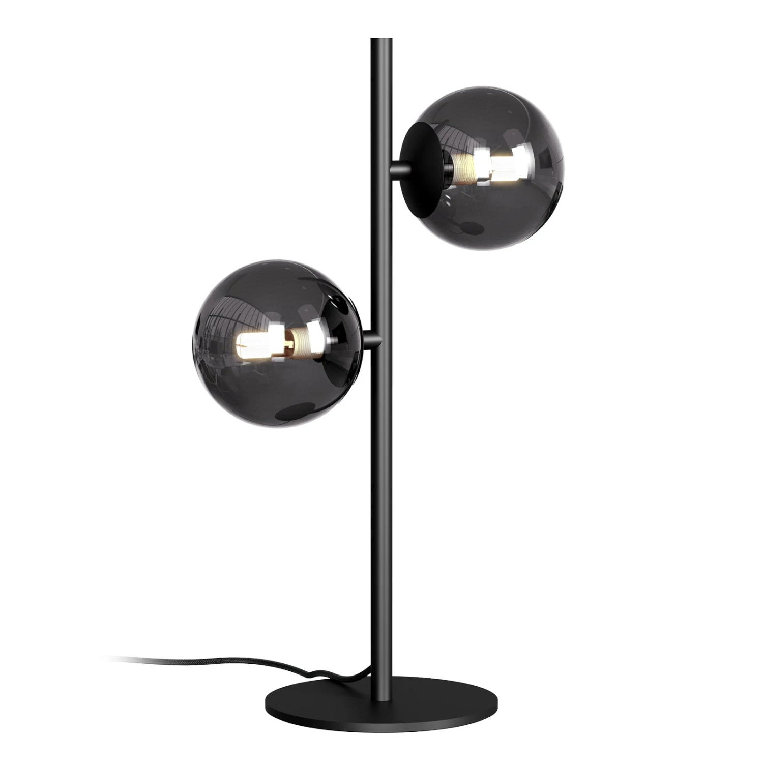 Tyylikkäässä Glasgow-pöytävalaisimessa on kaksi kaunista pallonmuotoista lasikupua, jotka on kiinnitetty kapeaan metallirunkoon. Valo heijastuu kauniisti huoneeseen persoonallisen ja näyttävän Glasgow-pöytävalaisimen värillisten valokupujen läpi. Messingin värisessä pöytävalaisimessa on samppanjan sävyiset lasikuvut ja mustassa valaisimessa on tummanharmaat savulasikuvut. Huomiota herättävä pöytävalaisin sopii lisävaloksi esimerkiksi olohuoneeseen, tunnelmavaloksi makuuhuoneeseen tai vaikkapa työpöydän kulmalle.