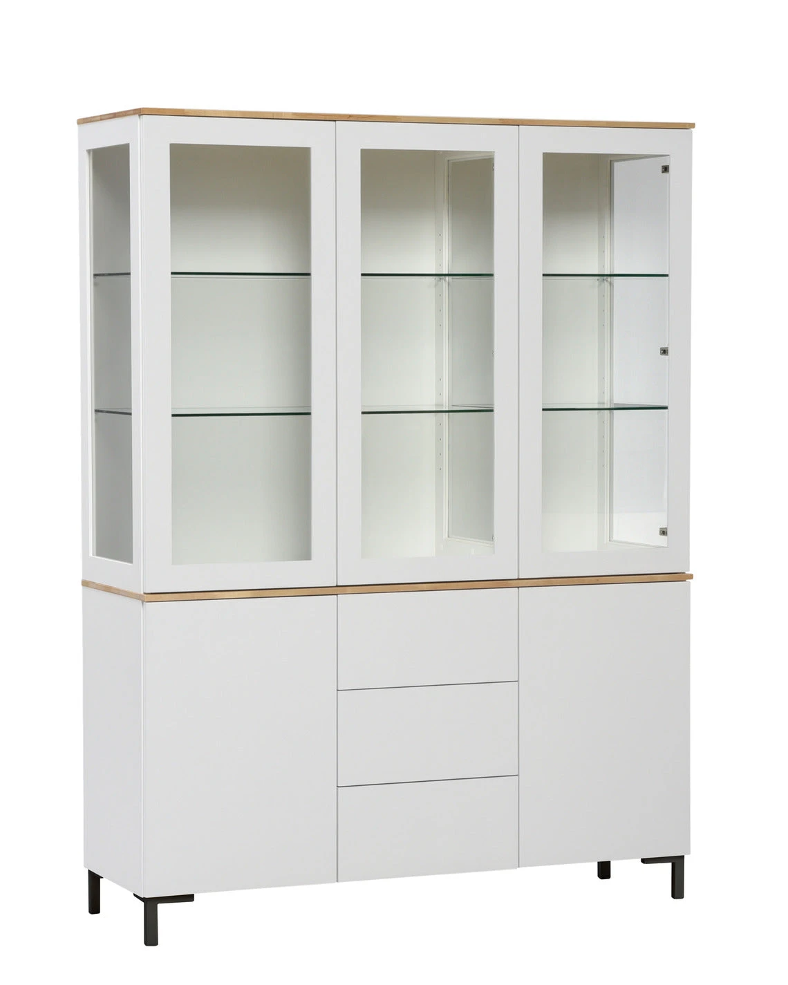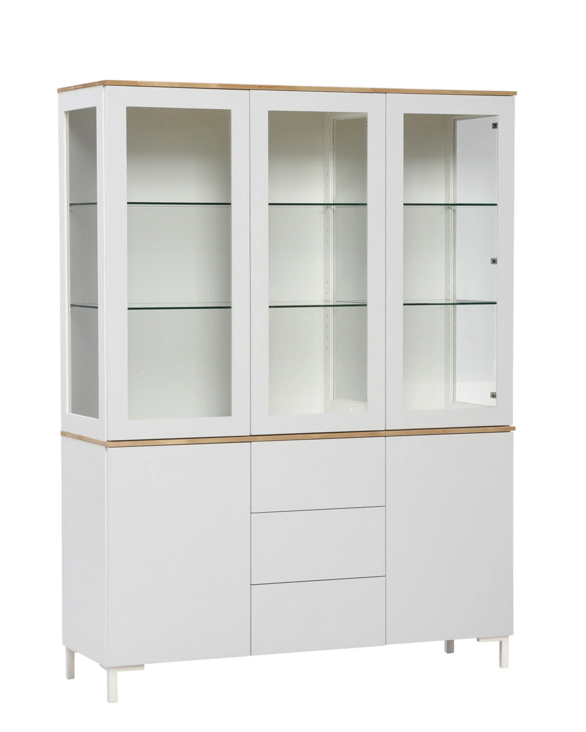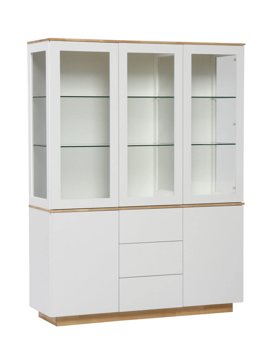 Kestävän Helsinki-koivusarjan vitriini tuo näkyvää säilytystilaa kodin eri huoneisiin, keittiöstä oleskelutiloihin. Kolmen lasioven lasikaapissa koriste-esineet saavat arvoisensa paikan. Alaosan ovikaappeihin ja laatikostoon voi kätkeä loput esineet järjestykseen ja odottamaan käyttöä.