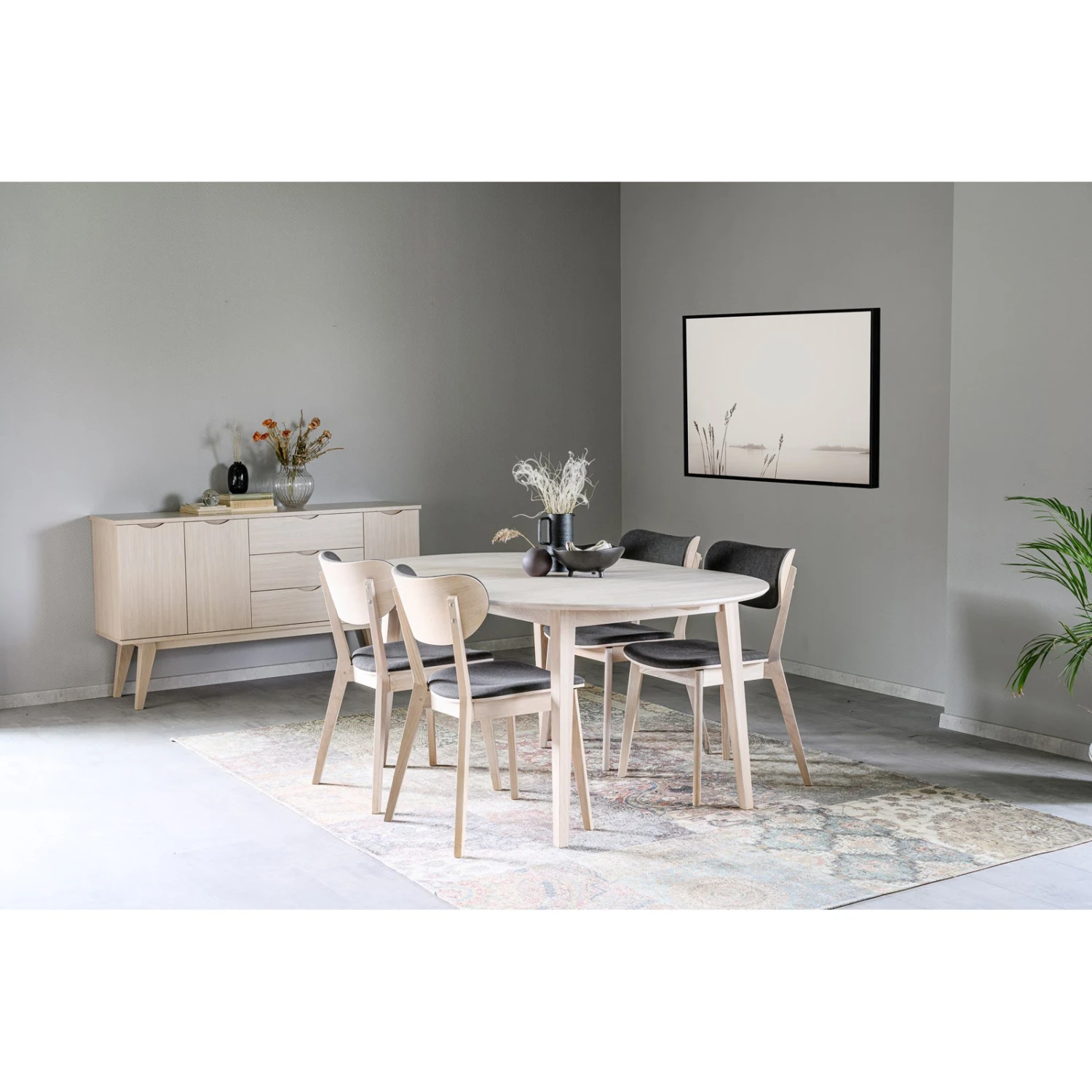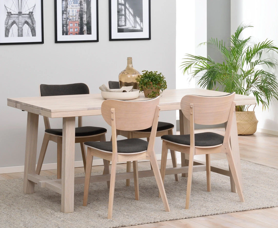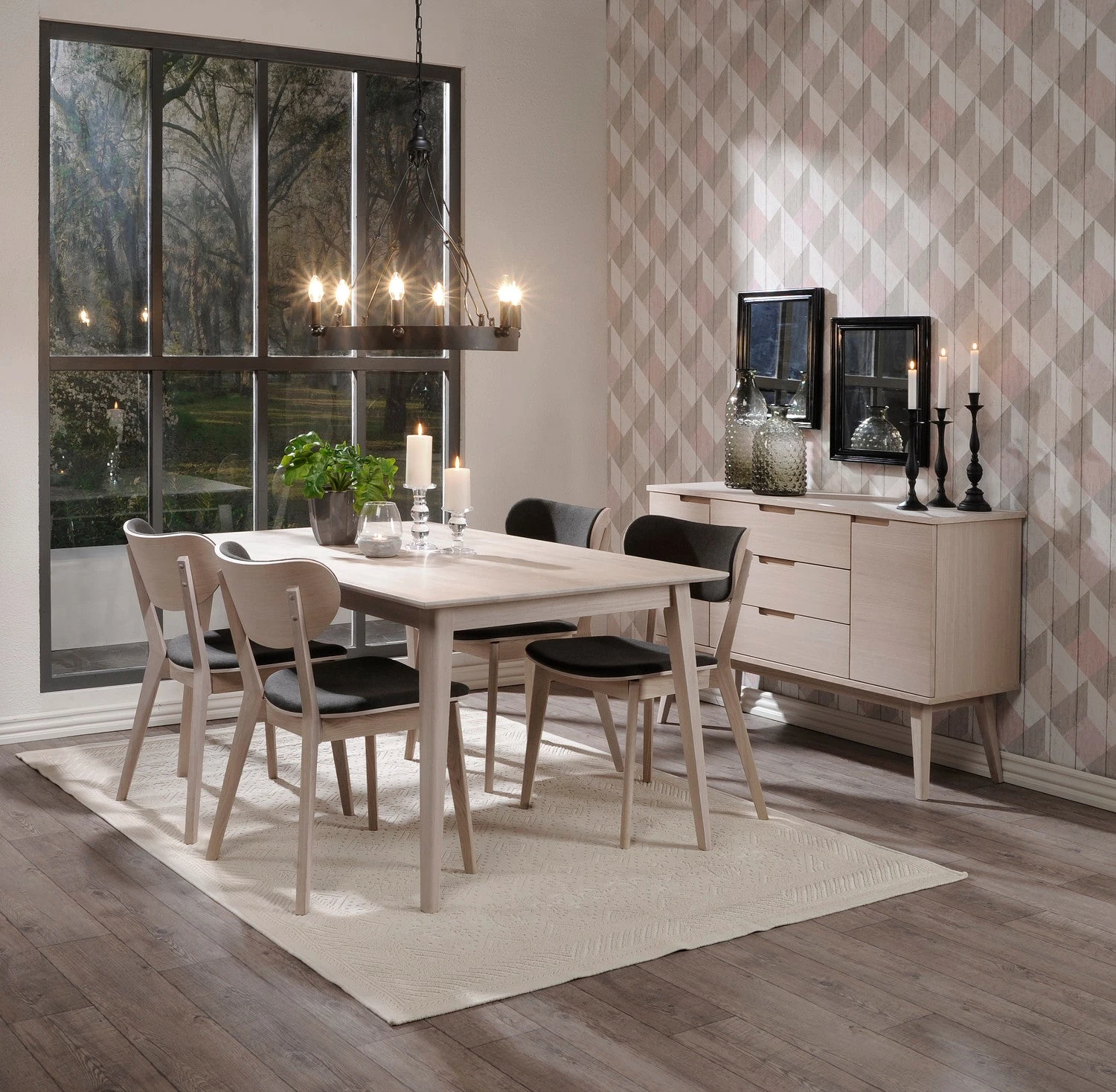 Kauniissa Kato-taivutetuolissa yhdistyvät retrohenkinen muotoilu ja ajattoman kodikas huonekalumateriaali tammi. Tuolin runko on massiivitammea ja se on saatavana joko mustaksi lakattuna tai kuultovalkoisena. Pehmustetussa istuimessa ja selkänojassa on tummanharmaa verhoilu.