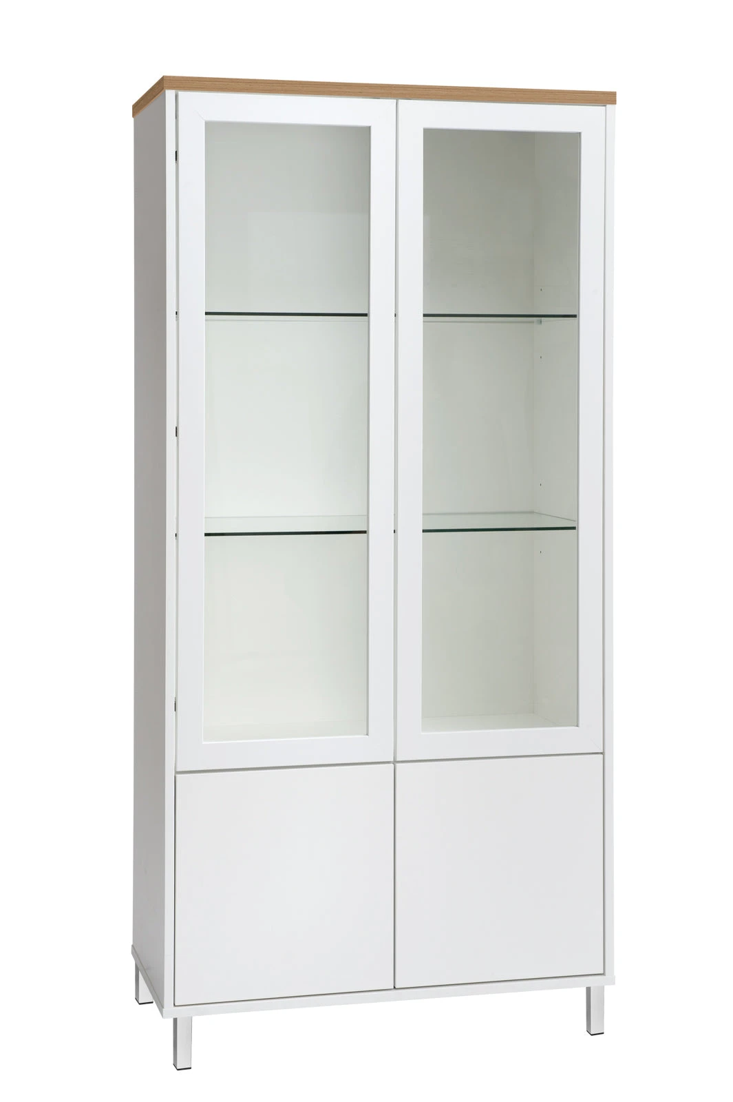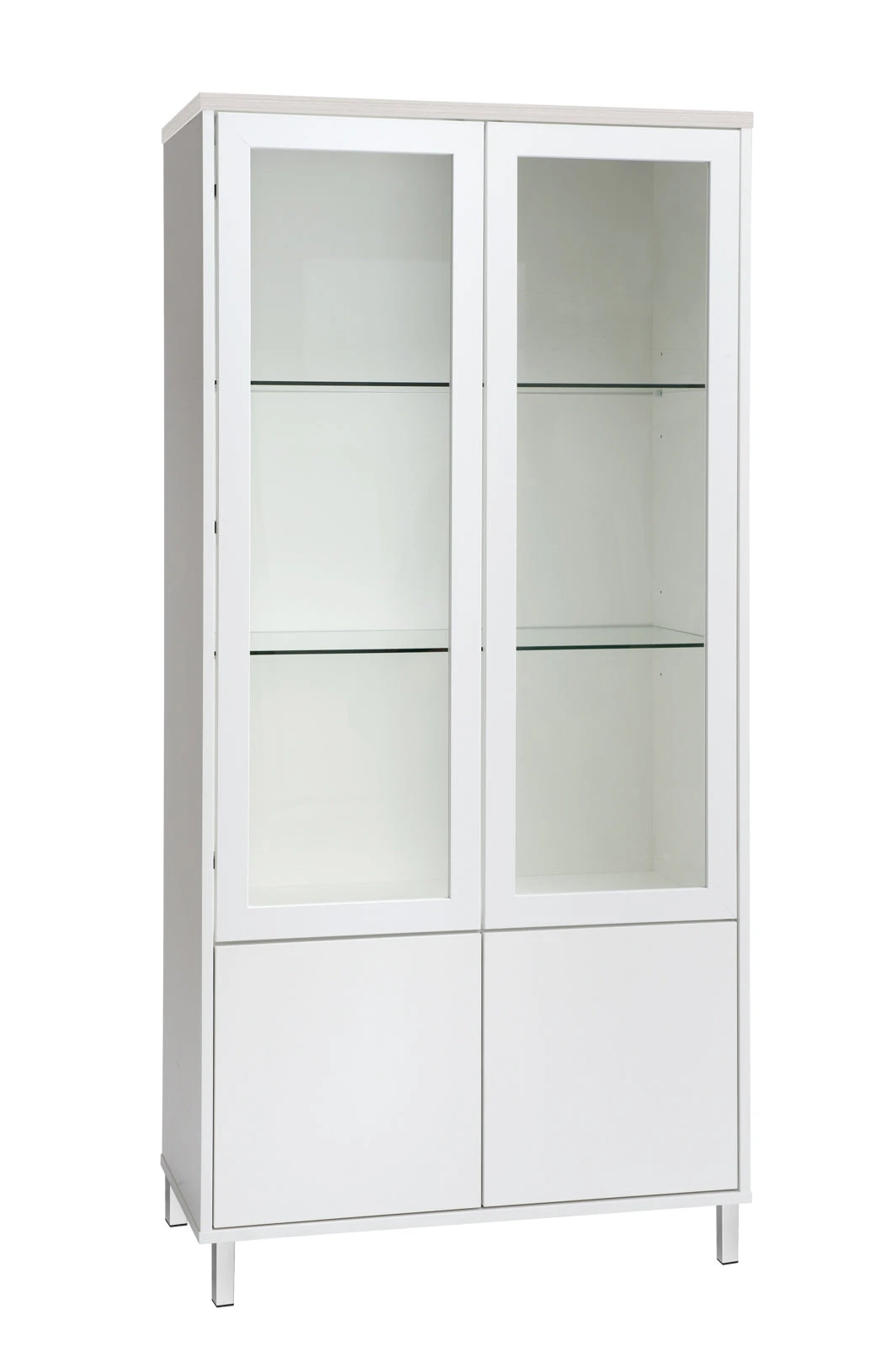 Kivi-sarjan vitriini tuo ihastuttavaa säilytystilaa kodin eri tiloihin. Kivi-vitriinin avulla saat pidettyä esineet siististi poissa pölyttymästä lasiovien takana ja lisätilaa järjestyksen ylläpitämiseen on alakaapissa. Vitriinissä on säädettävät hyllyt; lasikaapissa kaksi lasihyllyä ja alakaapissa yksi puuhylly. Hyllyjä säätämällä voi helpottaa esineiden, kuten vaikkapa eri kokoisten astioiden parempaa sijoittelua.