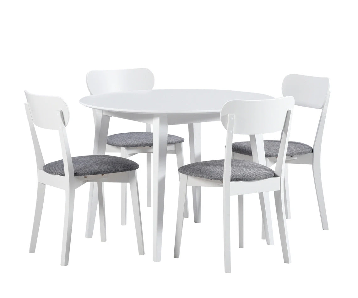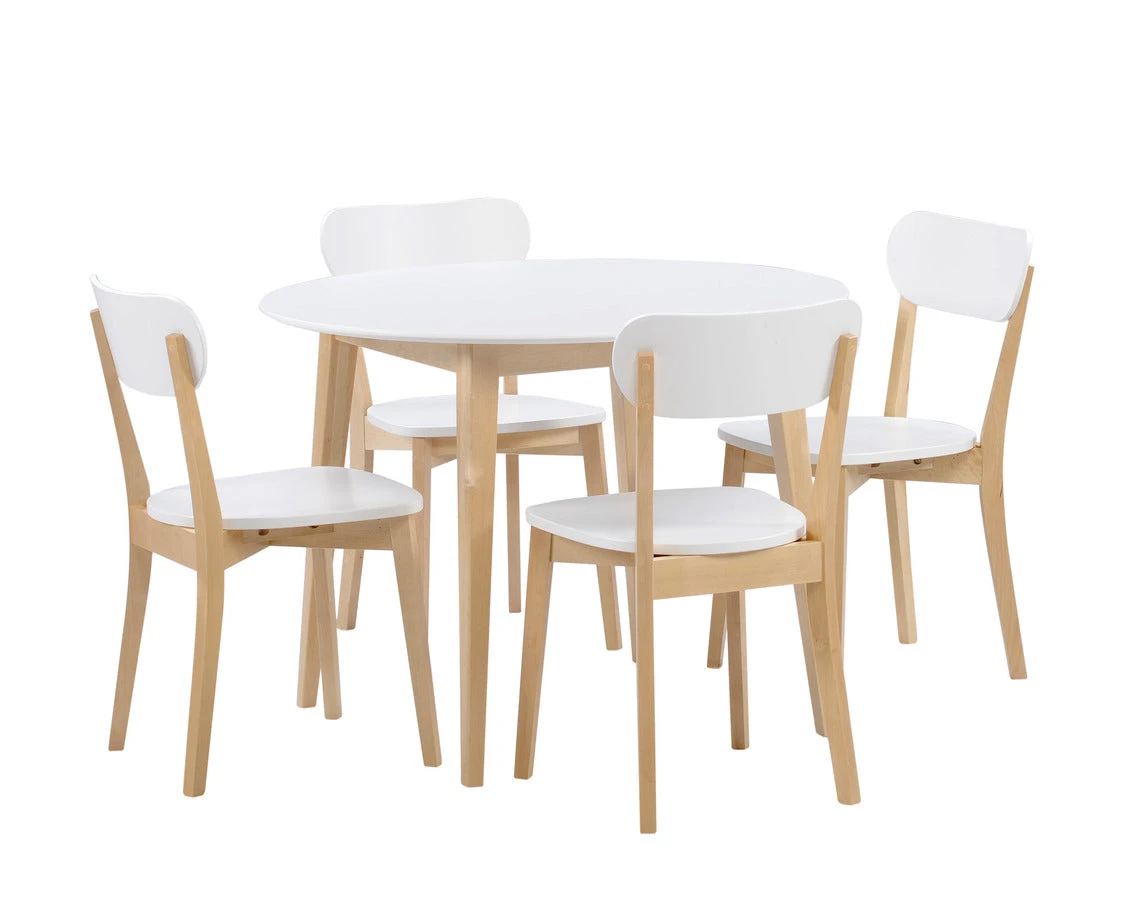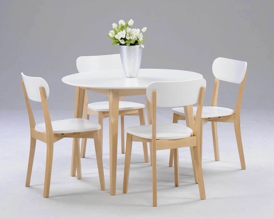 Pyöreän Laine-ruokailuryhmän retrohenkinen muotoilu huokuu menneiden vuosikymmenten nostalgiaa. Trendikkään pöytäryhmän keveä ilme johtuu tuolin matalasta ja suurelta osin avoimesta selkänojasta, sekä pöydän alaspäin kapenevista jaloista. Laadukkaan Laine-pöydän runko on kestävää massiivikoivua ja kansi maalattua mdf-huonekalulevyä. Tuoli on saatavana kovalla tai pehmeällä istuimella ja sen kestävä runko on valmistettu massiivikoivusta.