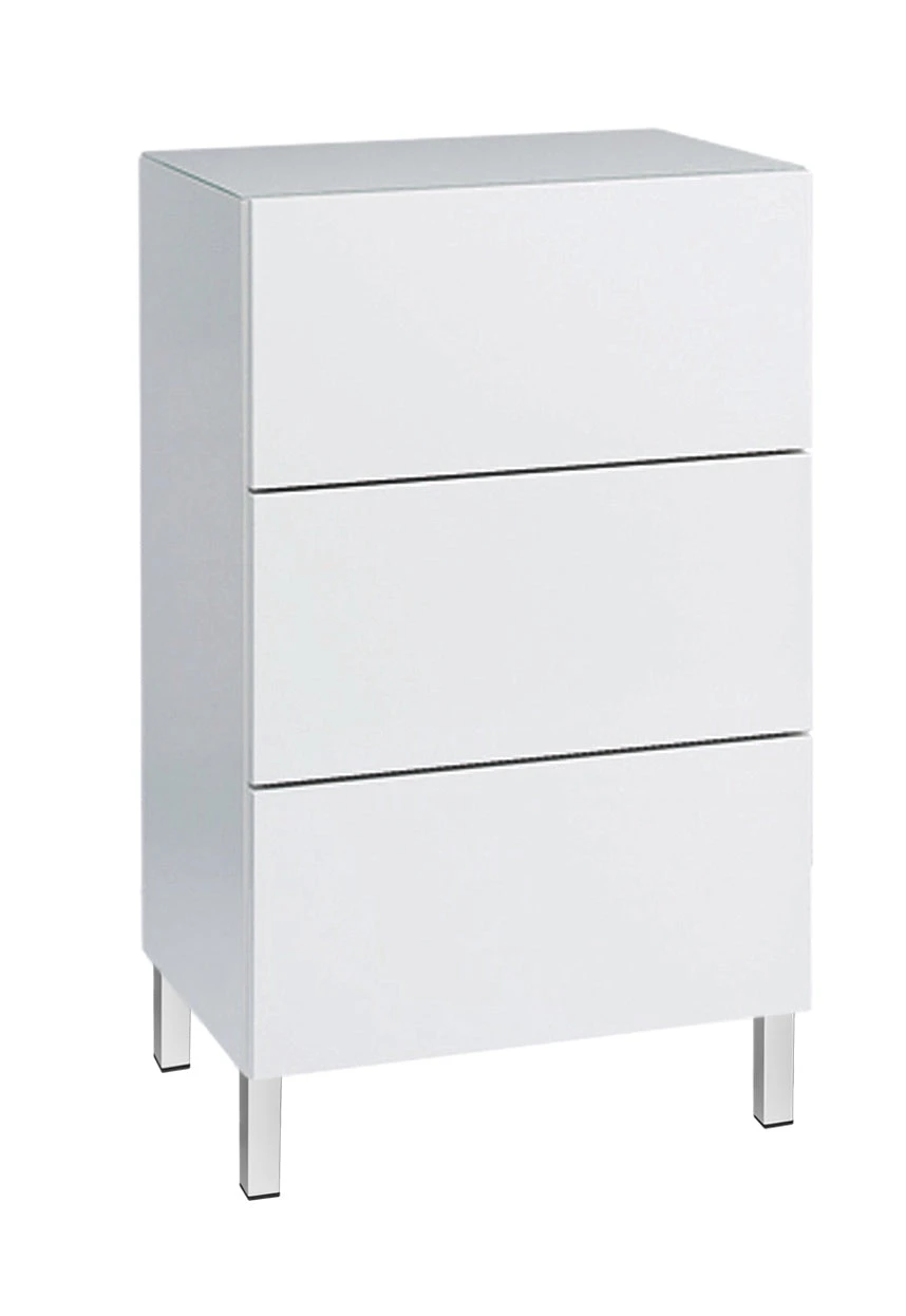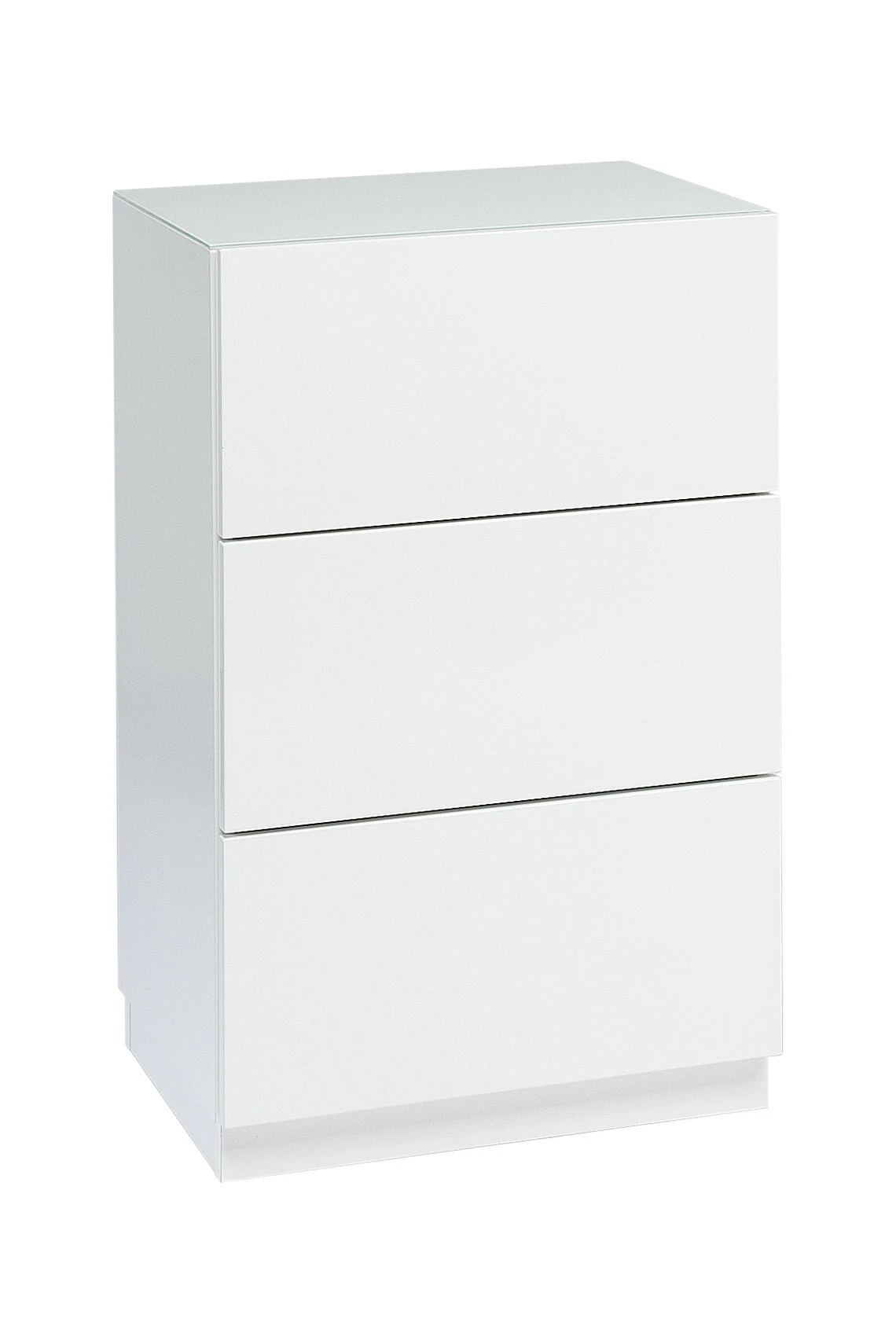 Lumo tuo kotiin ylellisyyttä hohtavan valkoisena. Korkeakiiltomaalatut etusarjat ja valkoiset lasikannet viimeistelevät kalusteet upeasti. Kätevä ’push to open’ -mekanismi tekee käytöstä nautittavan helppoa. Mukana tulee seinään kiinnittämistä varten kaatumisenestonauha, jolla etenkin lapsi- tai lemmikkiperheessä voi turvata huonekalun paikallaan pysymisen.
