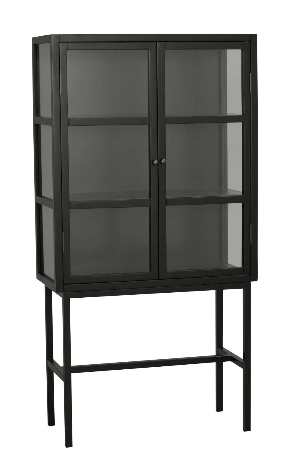 Marshalle-vitriini on upea lasikaappi korkeilla metallijaloilla. Suoralinjainen vitriini on valmistettu vaaleasta tai mustaksi lakatusta sileäpintaisesta puusta ja siinä on mustat jauhemaalatut metallijalat. Ohuet tyylikkäät jalat keventävät säilytyskalusteen ulkoasua.