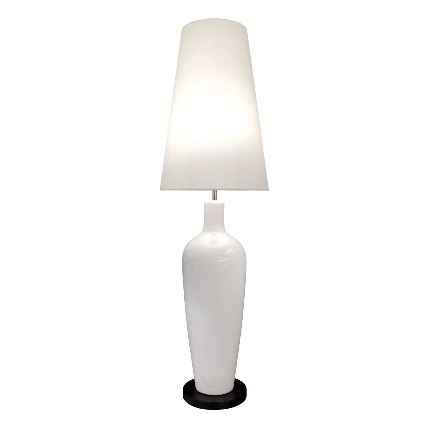 Design by Grönlundin Monza-pöytävalaisin hurmaa sulavalla muotoilullaan ja kiiltävällä pinnallaan. Valaisimen käsintehty keraaminen jalkaosa on muotoiltu tyylikkäästi ja kartion mallinen kevyesti aaltoileva varjostin hohtaa upeasti. Varjostin on valmistettu silkkilangasta, mikä saa valon pehmenemään erityisen kauniisti. Monza-pöytävalaisin on 94 cm korkea, joten se sopii sijoitettavaksi suurempaankin tilaan katseenvangitsijaksi ja tunnelman luojaksi.