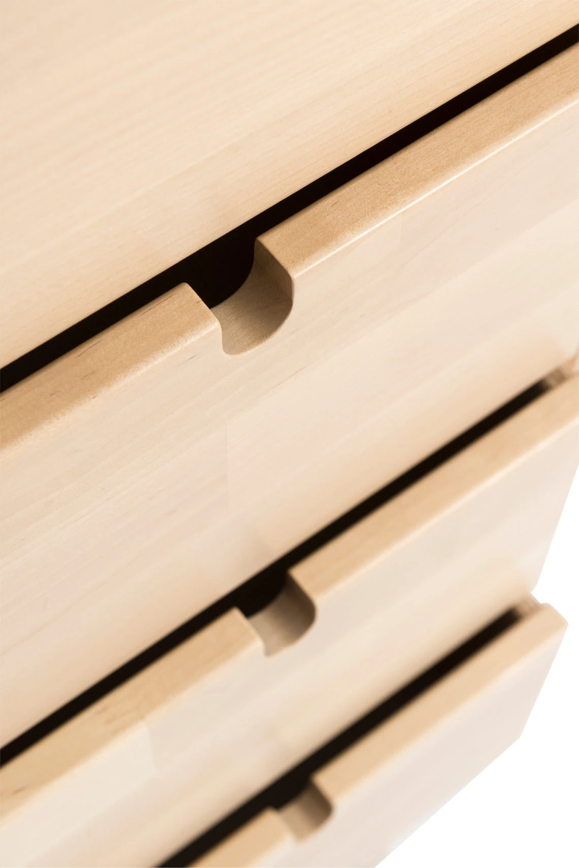 Hauska Notte-sarjan lipasto on täynnä pieniä yksityiskohtia. Lipaston jalkasarja on koivunvärinen ja sen lipasto-osan värivaihtoehdot ovat luonnonvärinen lakattu koivu ja maalattu valkoinen. Tyylikään elegantti, leveä ja matala Notte-lipasto soveltuu erinomaisesti useisiin eri tiloihin kotonasi.
