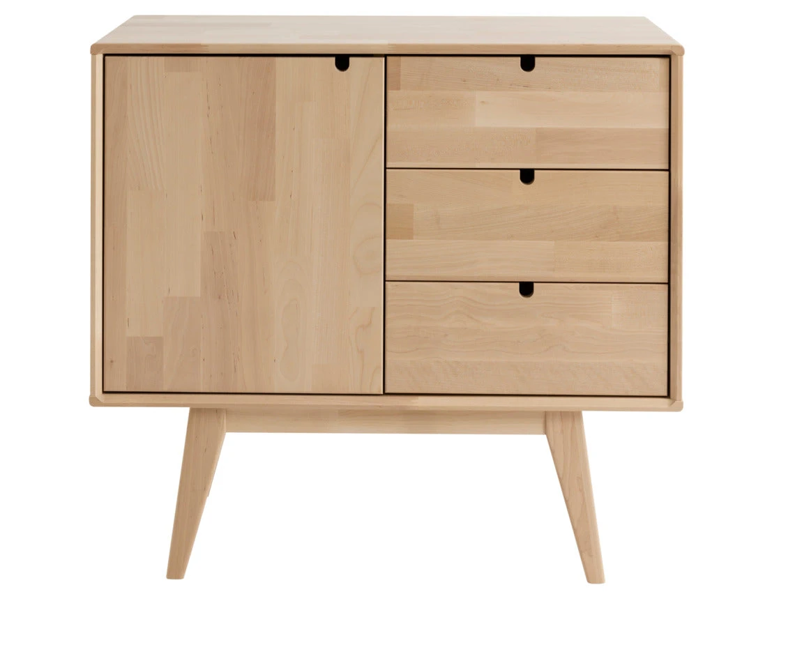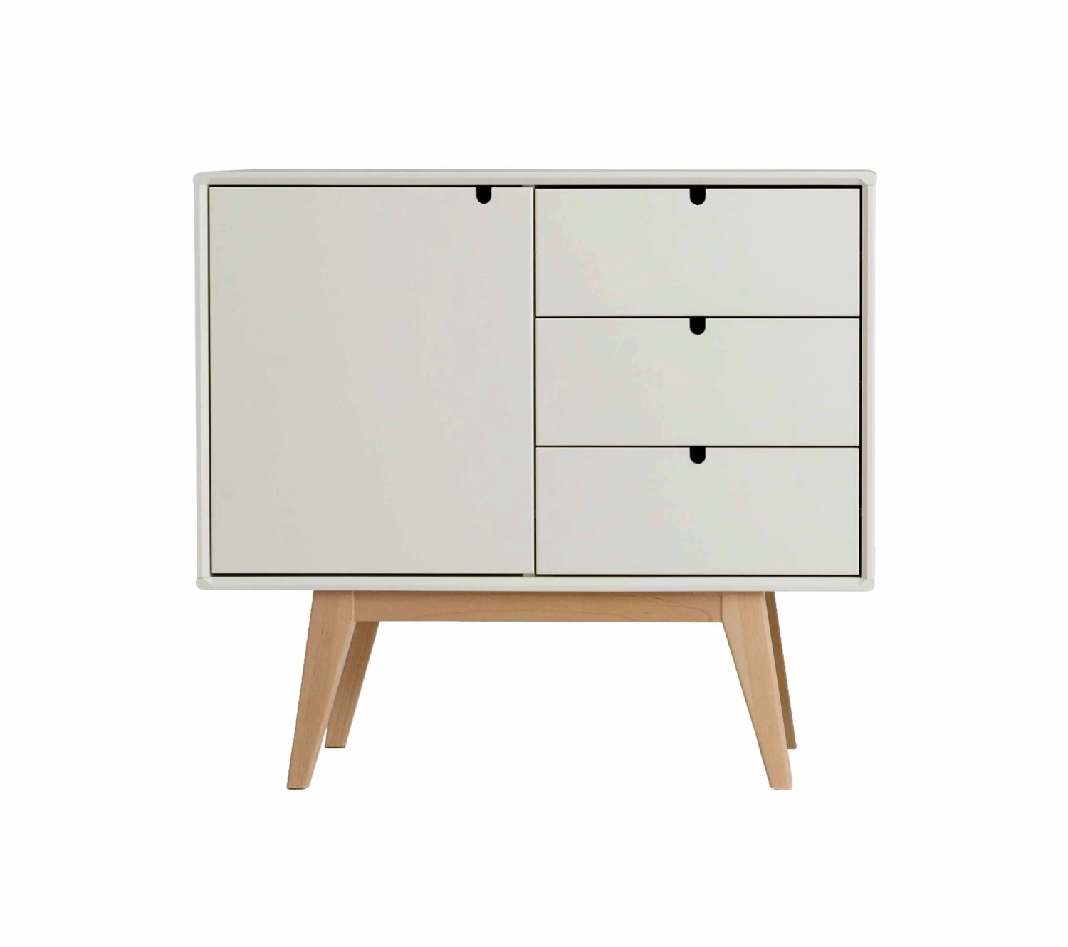 Lipaston koko ja muotoilu tekevät lipastosta kevyen näköisen ja mahdollistavat sijoittelun pieneenkin tilaan. Näppärän kokoisessa lipastossa on kodin aarteiden säilyttämiseen paljon kaappi -ja laatikkotilaa.
