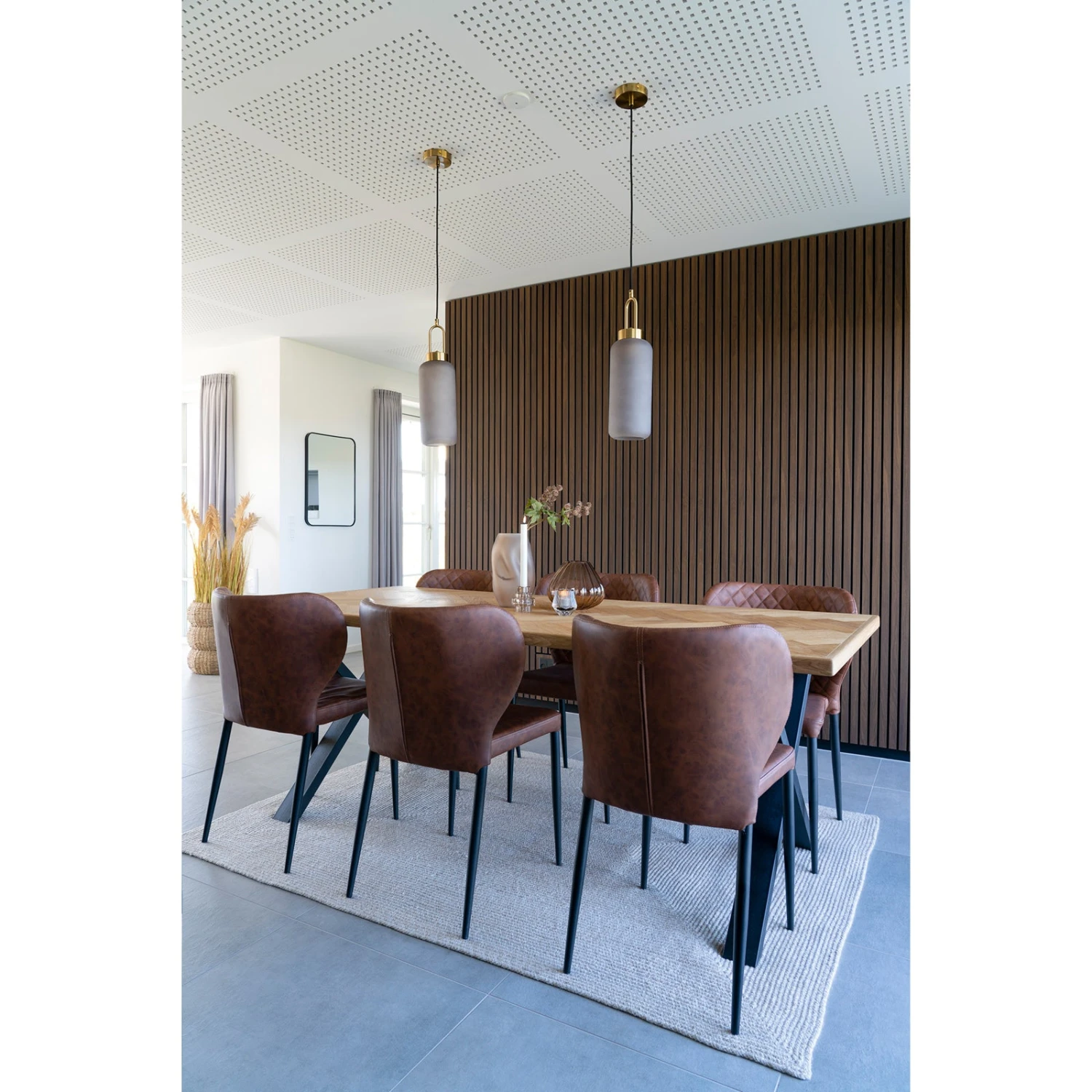 Pisa-tuoli on ajan hengen mukainen, elegantti ja sulavalinjainen ruokapöydän tuoli. Tuolissa on kaunis selkänojan istuinpuolelta tikattu PU-keinonahkaverhoilu, joka antaa tyylikkään vaikutelman ja on myös helppohoitoinen. Onnistunut muotoilu tuo samalla myös hyvän istuinmukavuuden. Värivaihtoehtoina ovat lämmin konjakinruskea, trendikäs tummanharmaa sekä hienostunut kokomusta.