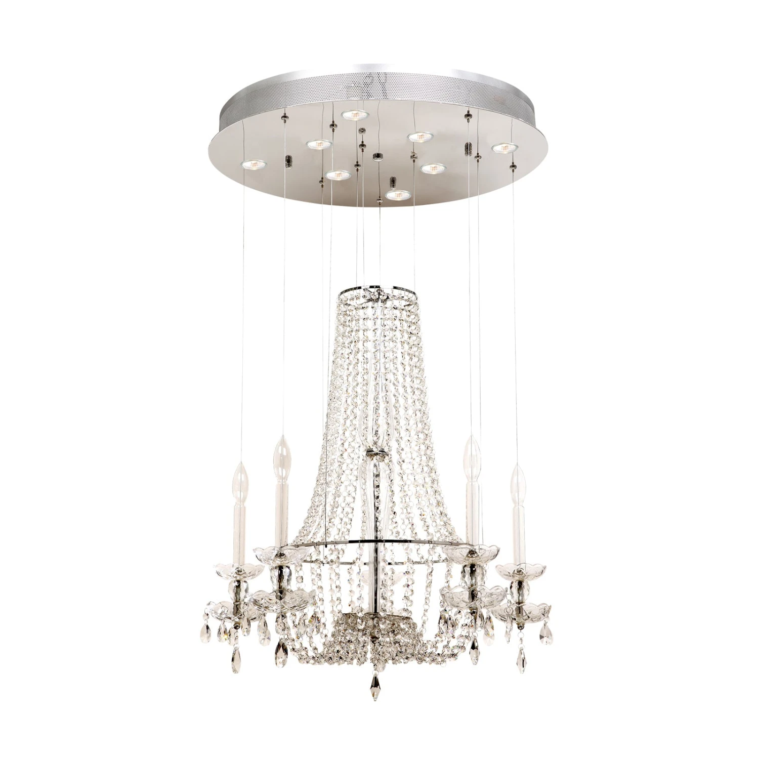 Queen-kattokruunu versioi vanhaa kynttiläkattokruunua modernilla twistillä. Queen-kattokruunu on upea kattovalaisin, jossa kromin värinen runko yhdistyy kynttilän muotoisiin valaisimiin sekä putouksen lailla valuviin kristallikoristeisiin. Kaunis ja näyttävä kynttiläkattokruunu sopii täydellisesti esimerkiksi moderniin kesähuvilaan, jossa vanha ja uusi kohtaavat! Upea kattovalaisin sopii näyttäväksi keskipisteeksi korkeaankin tilaan.