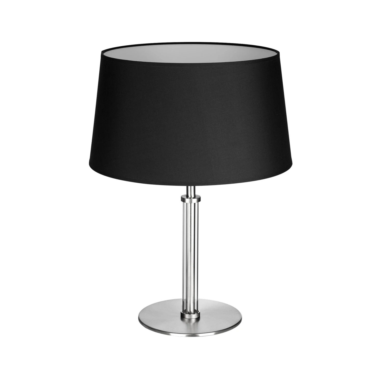 Korkealaatuinen Rome on tukeva teräsjalkainen pöytävalaisin. Upean valaisimen musta kangasvarjostin on halkaisijaltaan 55 cm. Tämä pöytälamppu on uniikki sen jalassa olevan lasisen pienen, mutta erottuvan yksityiskodan ansiosta!
