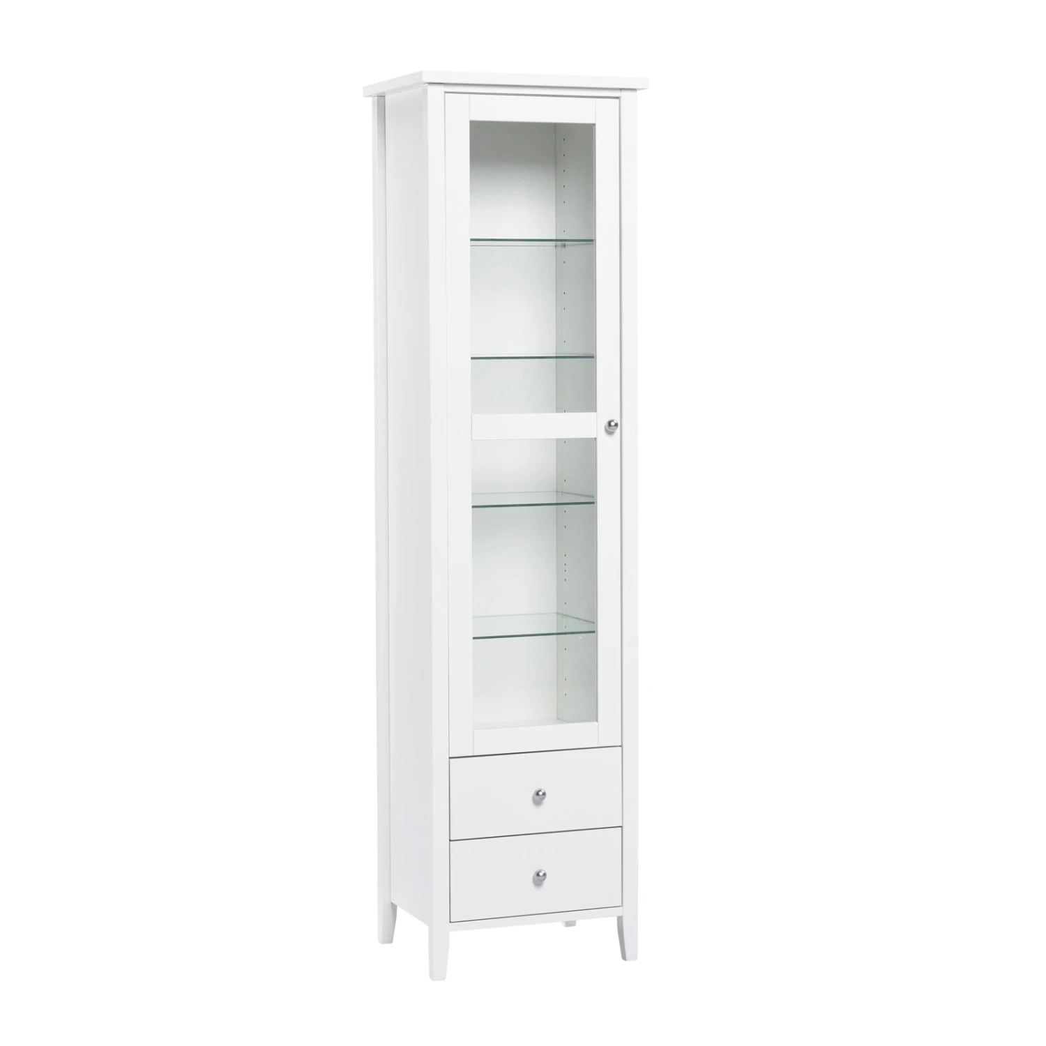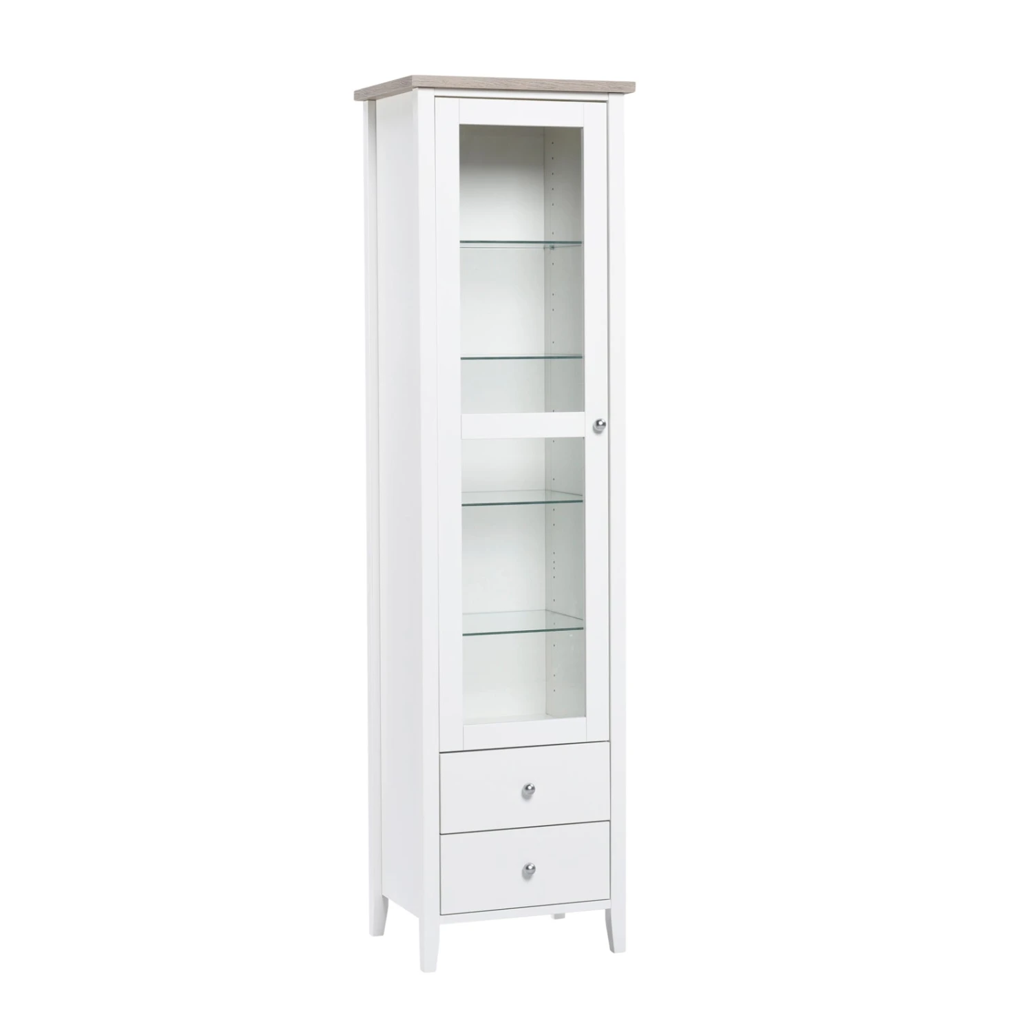 Kapean Saara-vitriinin lasikaappi tuo tullessaan näyttävää säilytystilaa, sinne missä sitä kotona tarvitaan. Vitriinin hyllyt ovat valinnan mukaisesti levyä tai lasia. Monikäyttöisessä vitriinissä on myös laatikkotilaa silmiltä suojassa.