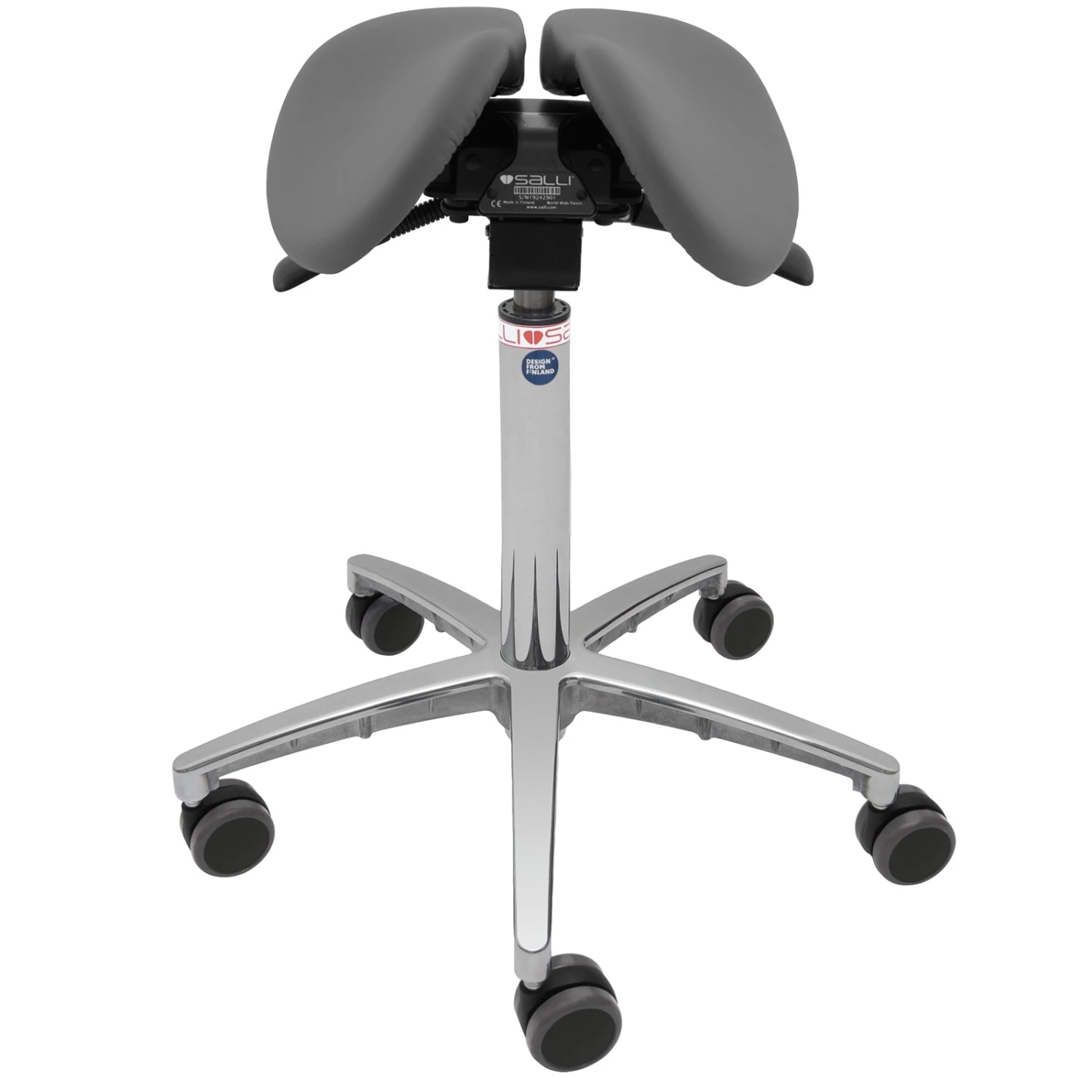 Kotimaisen Salli Small MultiAdjuster -satulatuolin normaalia kapeamman kallistuvan istuimen ansiosta työskentelyasennon pystyy säätämään juuri optimaaliseksi! Kallistamalla istuinta eteenpäin on tuolin kallistusmekanismin avulla mahdollista kurottaa eteenpäin ilman haitallista pyöreäselkäisyyttä. Small MultiAdjuster -satulatuolissa on neljä kokovaihtoehtoa korkeuden säätämiseen kaasujousella, jonka mitta valitaan käyttäjän pituuden mukaan, tai vaihtoehtoisesti työskentelykorkeusmitassa.