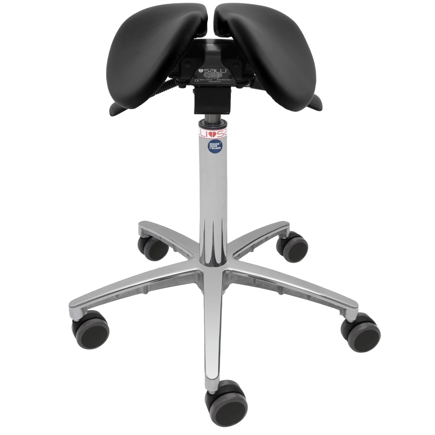 - Kaksiosainen istuin. Istuimen keskiraon ansiosta lantion alueelle ei kohdistu haitallista istumapainetta. Tuoli ei myöskään paina genitaalialuetta, joten selkää ei tarvitse pyöristää epämukavasta paineen tunteesta pois päin. Selkä pyöreänä istuminen on haitallista etenkin alaselälle, koska silloin välilevyihin kohdistuu epätasainen paine.