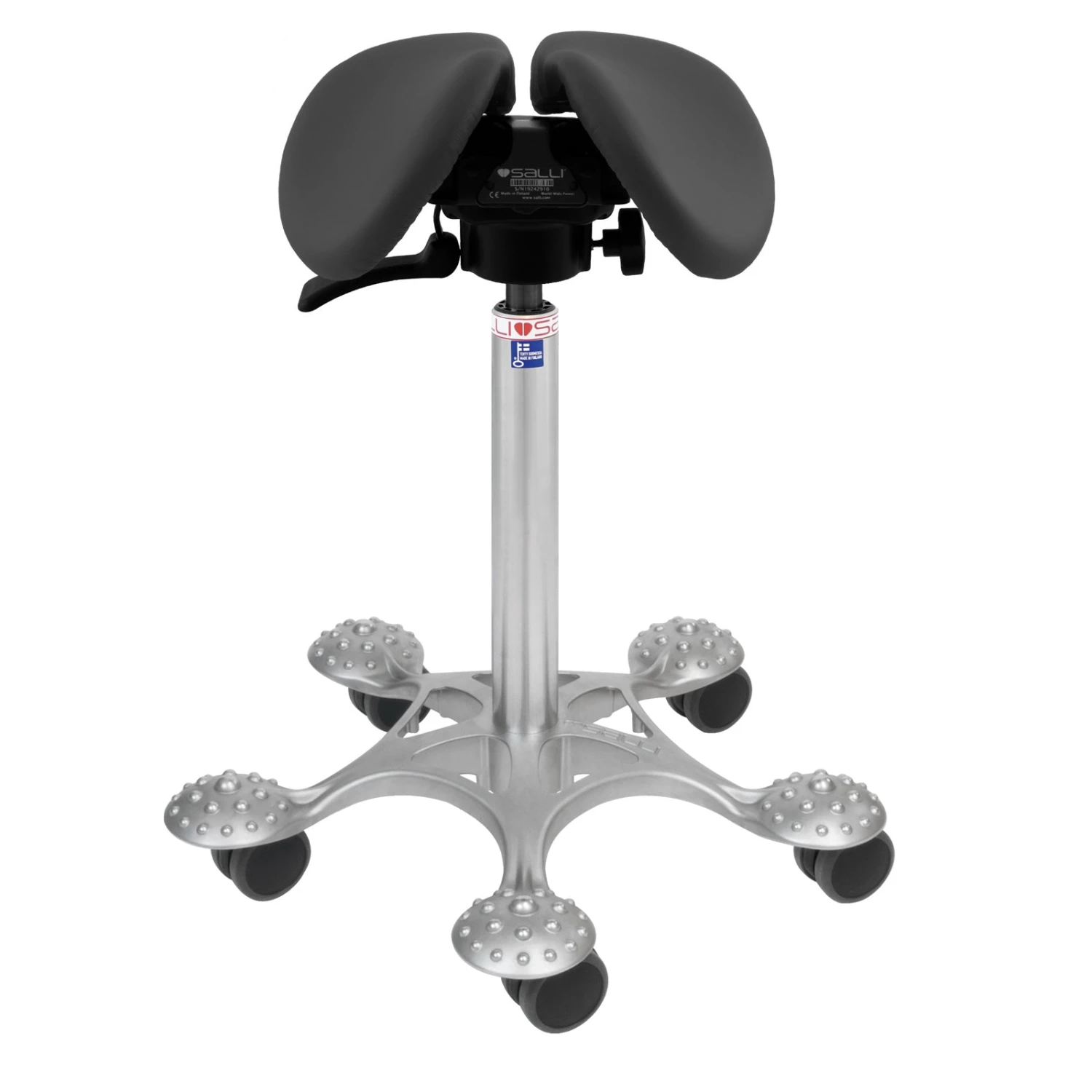 - Anatominen muotoilu. Salli Satulatuolin istuin on muotoiltu niin, että se häiritsee verenkiertoa ja aineenvaihduntaa mahdollisimman vähän. Istuimessa on reisien kohdalla loiva syvennys, joten jalat on helppo pitää vartalon sivulla. Tässä asennossa selkä asettuu lähes automaattisesti oikeaan asentoon, toisin kuin silloin kun jalat ovat vartalon edessä.