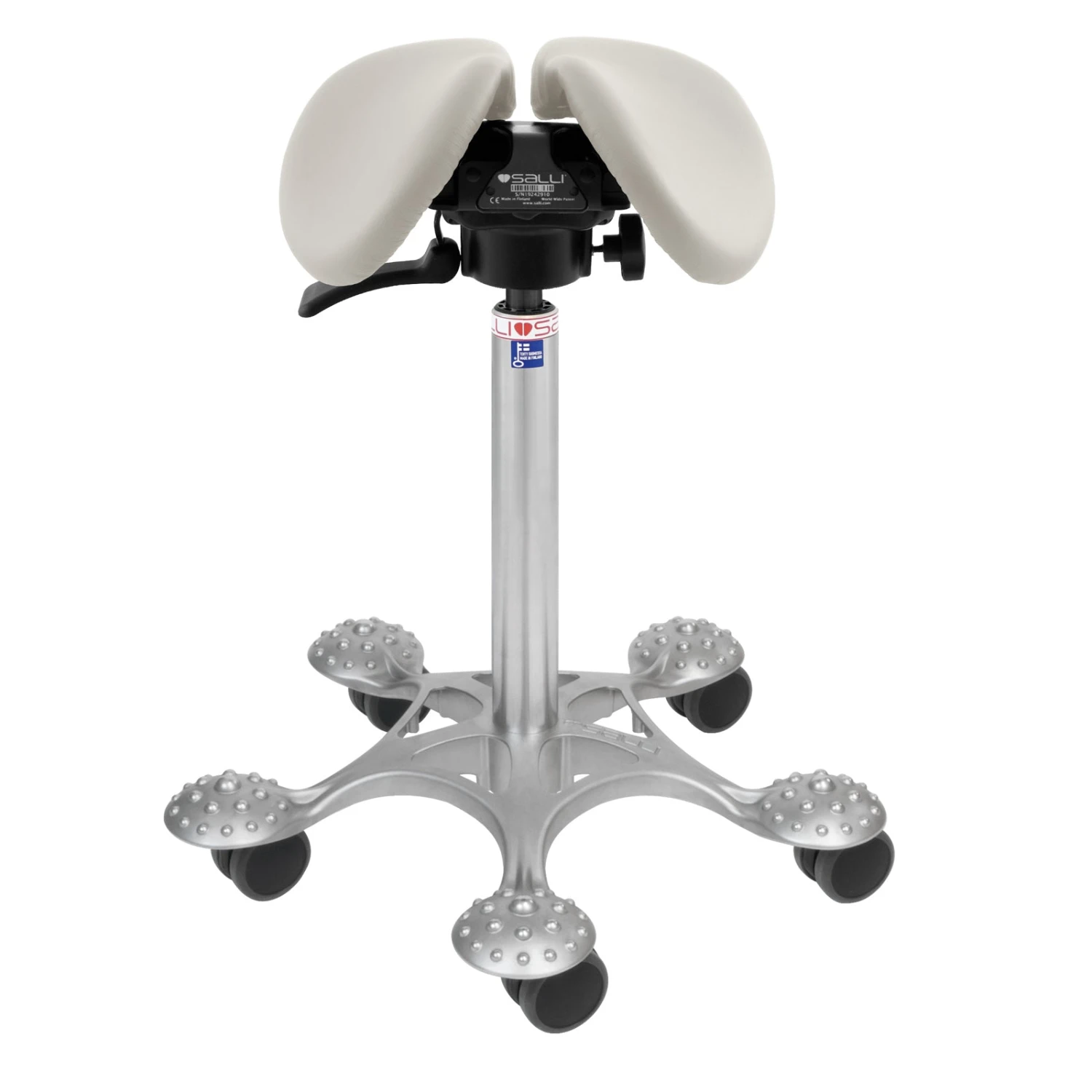 - Kaksiosainen istuin. Istuimen keskiraon ansiosta lantion alueelle ei kohdistu haitallista istumapainetta. Tuoli ei myöskään paina genitaalialuetta, joten selkää ei tarvitse pyöristää epämukavasta paineen tunteesta pois päin. Selkä pyöreänä istuminen on haitallista etenkin alaselälle, koska silloin välilevyihin kohdistuu epätasainen paine.