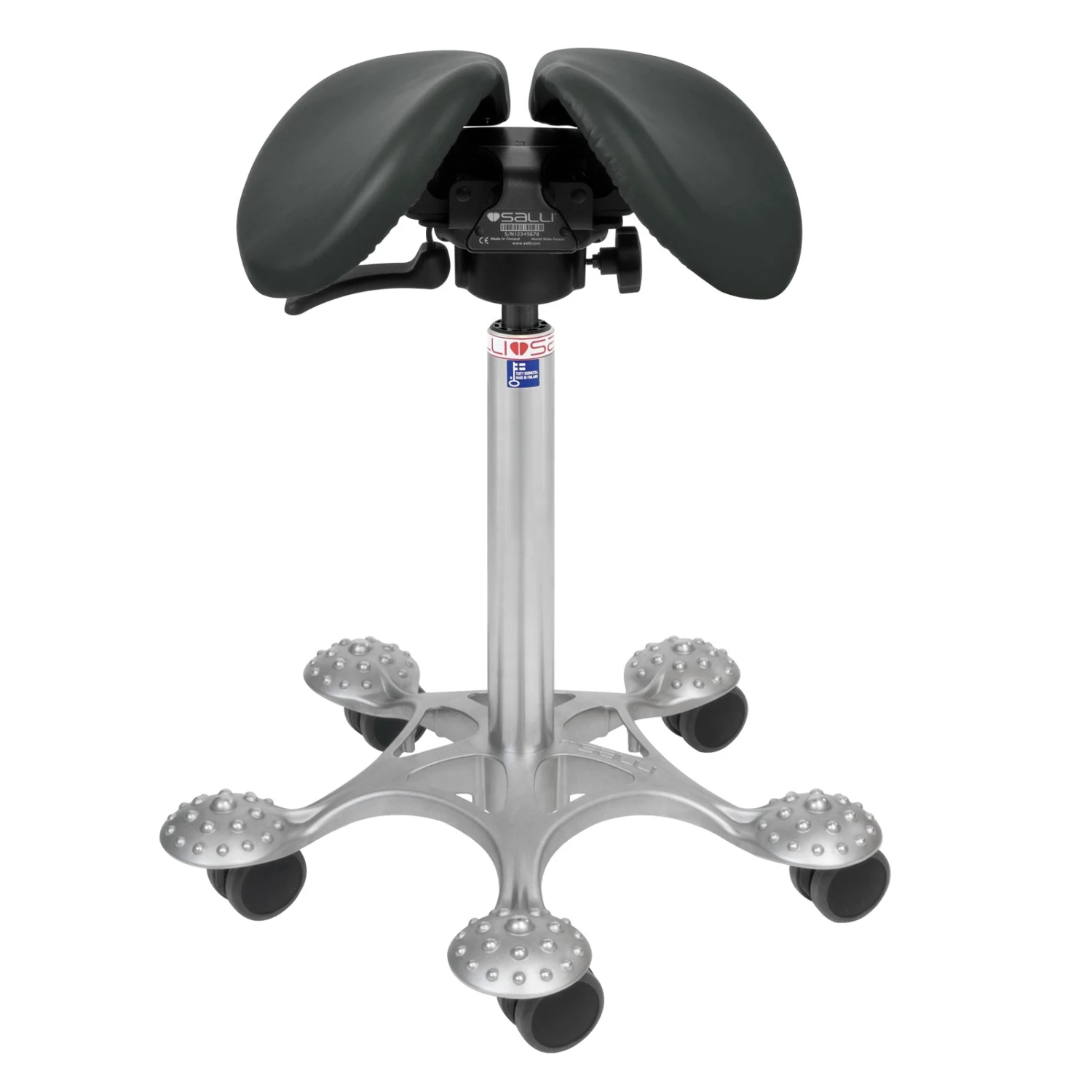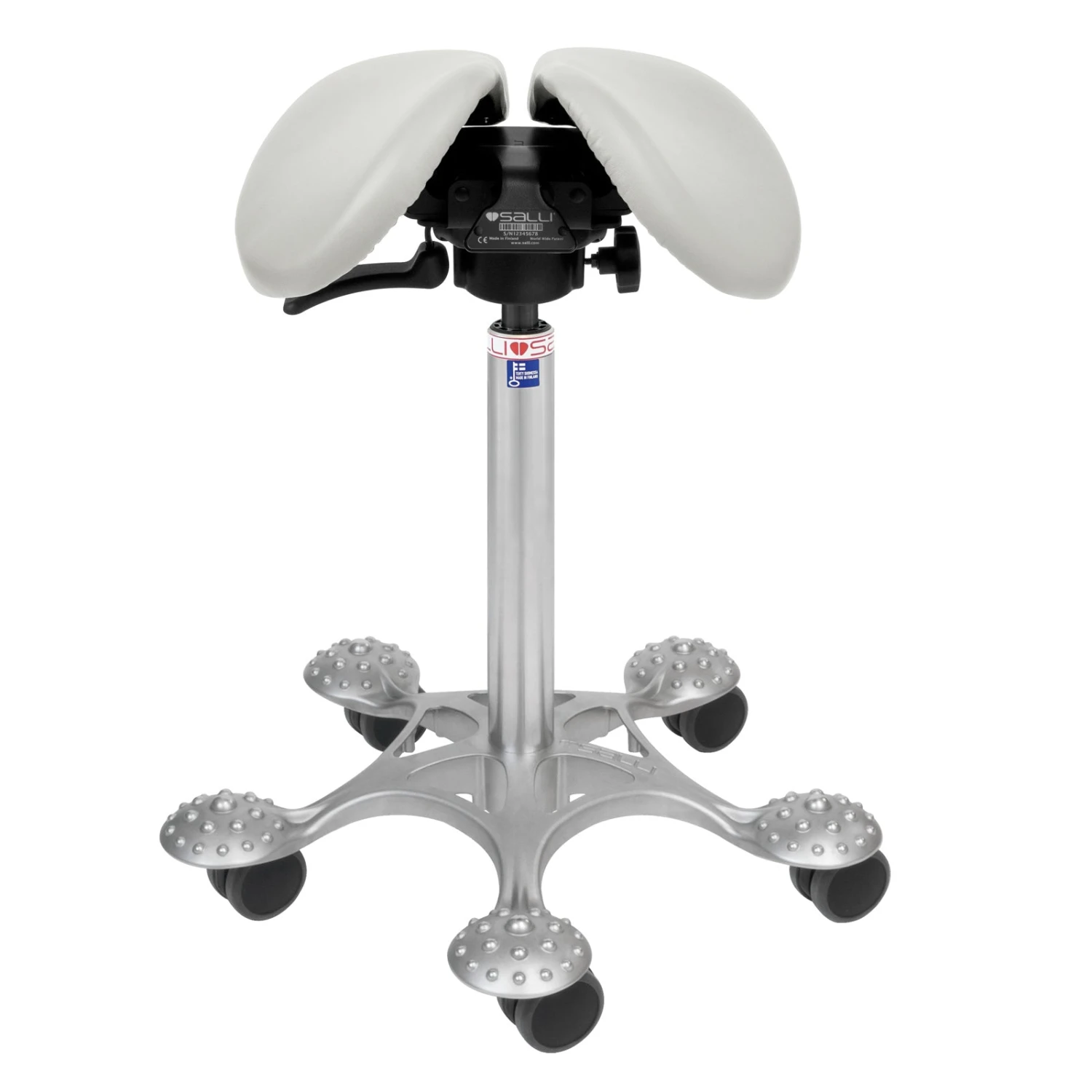 - Kaksiosainen istuin. Istuimen keskiraon ansiosta lantion alueelle ei kohdistu haitallista istumapainetta. Tuoli ei myöskään paina genitaalialuetta, joten selkää ei tarvitse pyöristää epämukavasta paineen tunteesta pois päin. Selkä pyöreänä istuminen on haitallista etenkin alaselälle, koska silloin välilevyihin kohdistuu epätasainen paine.