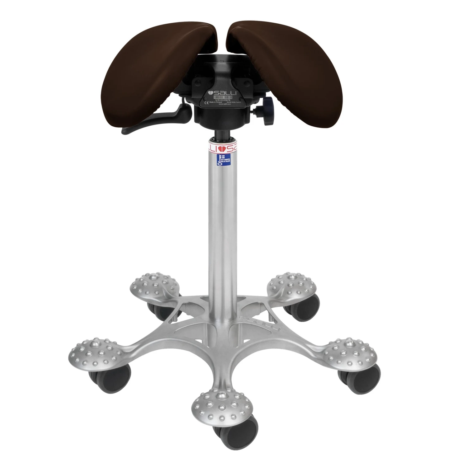 - Anatominen muotoilu. Salli Satulatuolin istuin on muotoiltu niin, että se häiritsee verenkiertoa ja aineenvaihduntaa mahdollisimman vähän. Istuimessa on reisien kohdalla loiva syvennys, joten jalat on helppo pitää vartalon sivulla. Tässä asennossa selkä asettuu lähes automaattisesti oikeaan asentoon, toisin kuin silloin kun jalat ovat vartalon edessä.
