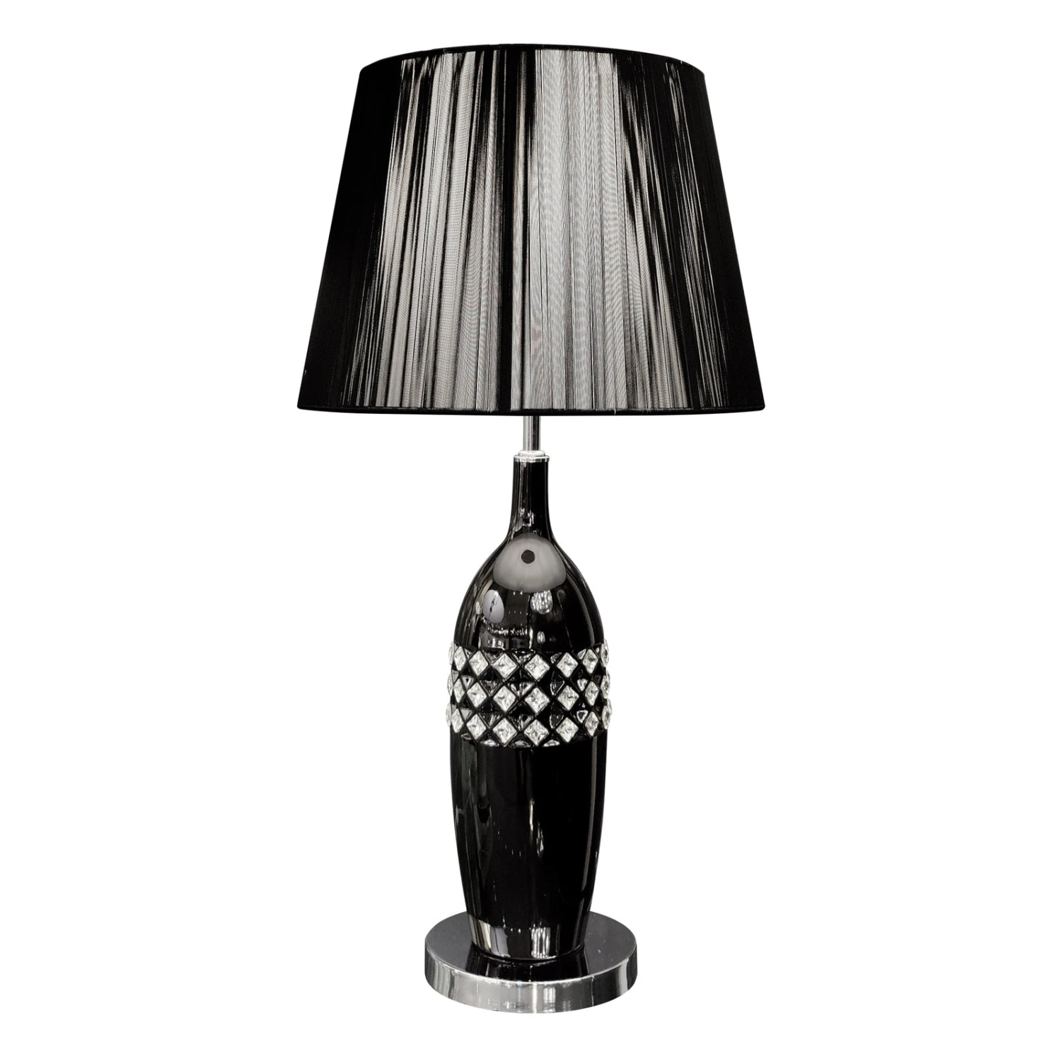 Näyttävässä korkeassa Shine-pöytävalaisimessa on upea keraaminen runko, johon on upotettuna kolmessa rivissä kauniita kristalleja. Koristeellisessa mustassa pöytälampussa on kiiltävä läpikuultava lankavarjostin, joka kruunaa kokonaisuuden! Ihastuttavaa Shine-valaisinta löytyy myös