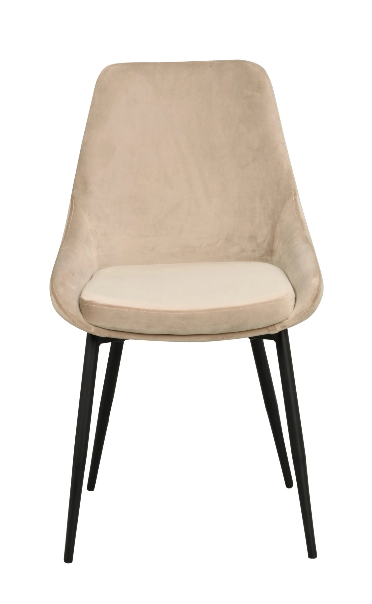 Moderni Sierra-tuoli hurmaa kupinmuotoisella istuinosallaan. Tuolissa on pehmeällä samettikankaalla pehmustettu istuin- ja selkänojaosa. Sierra-tuoleja on saatavilla useilla eri väreillä, josta löydät varmasti itsellesi mieluisan. Tuolissa on hieman viistot mustat jauhemaalatut metallijalat.