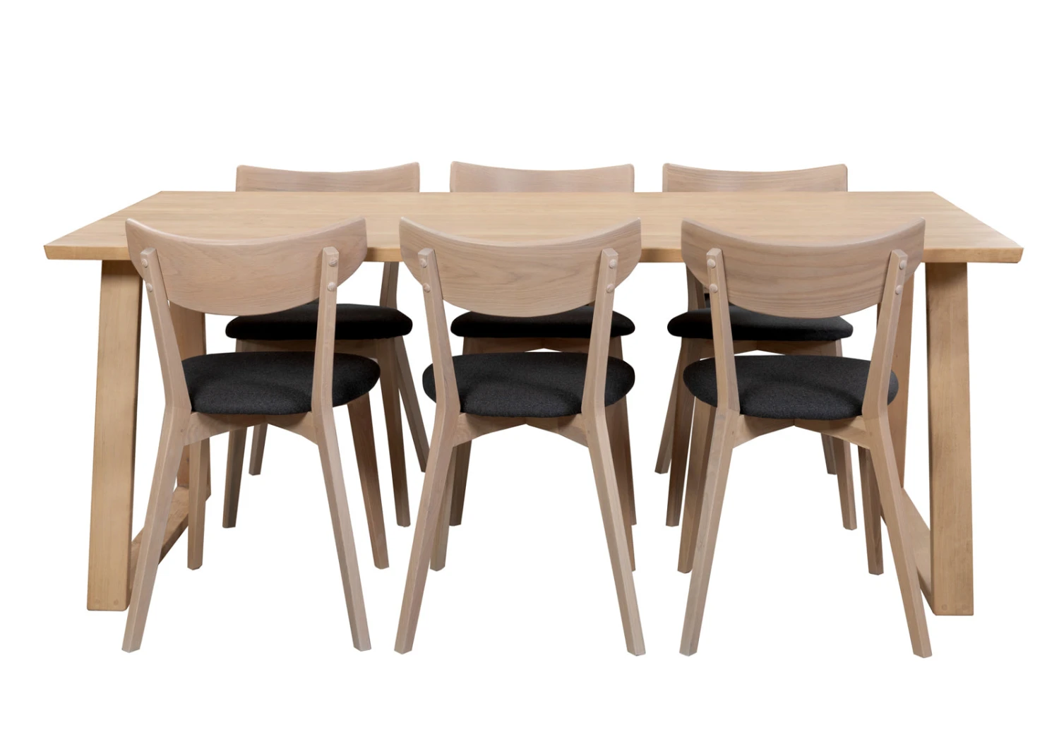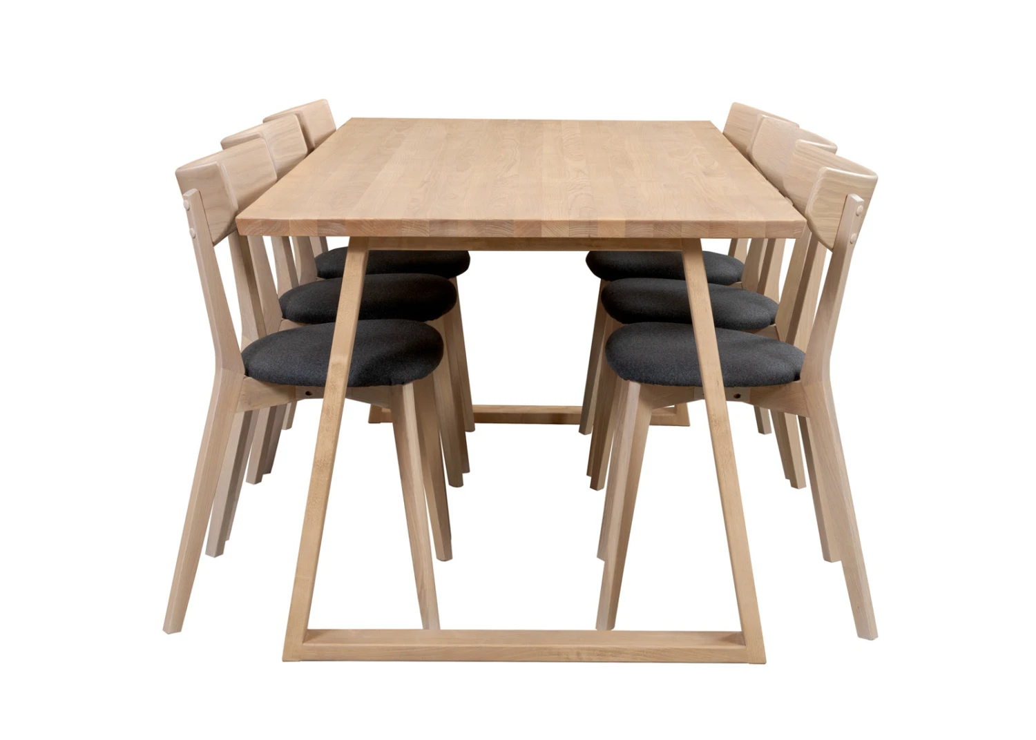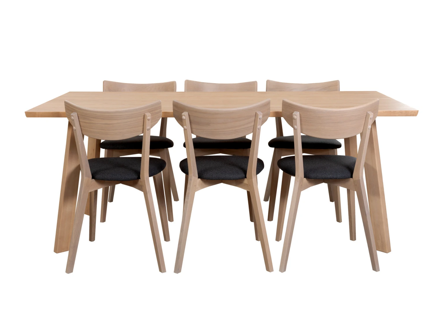 Aikaa kestävässä ruokaryhmän Swing-pöydässä on koivukansilevy, jolle voit valita puiset viistejalat tai vinot yksittäiset jalat. Puhdaslinjainen Swing-pöytä tuo modernia ilmettä ruokaryhmään, jonka viimeistelevät ruotsalaisen Rowicon klassiset Ami-tuolit.