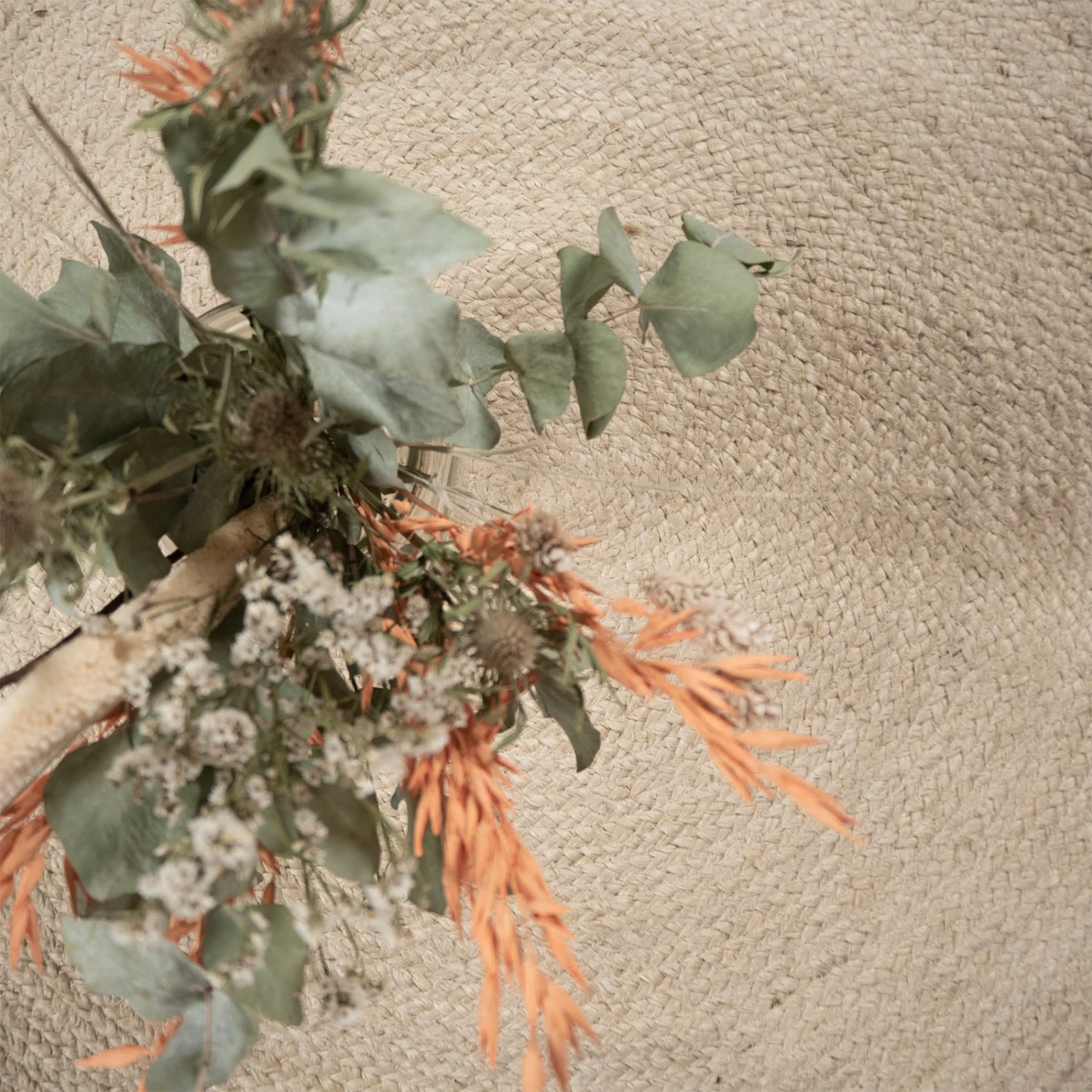 Tikken on lettipintainen pyöreä vaalea juuttimatto trendikkäälle sisustajalle. Kaunis letitetty pinta ja vaalea väri pehmentävät maton rouheaa olemusta. Juuttimatto tuo ripauksen maanläheisyyttä kotiin ja se on helppo yhdistää myös modernin sisustuksen kanssa.