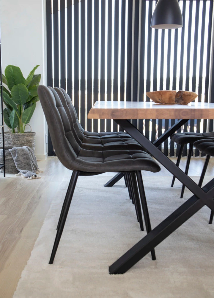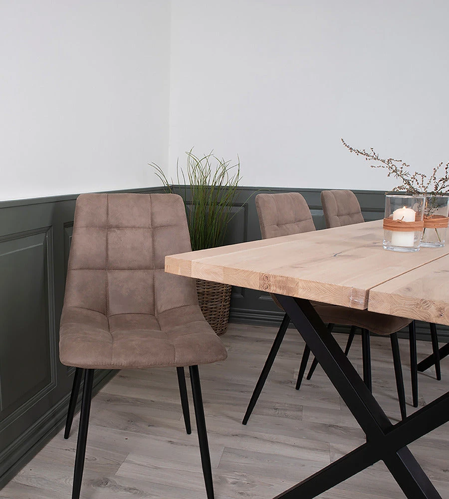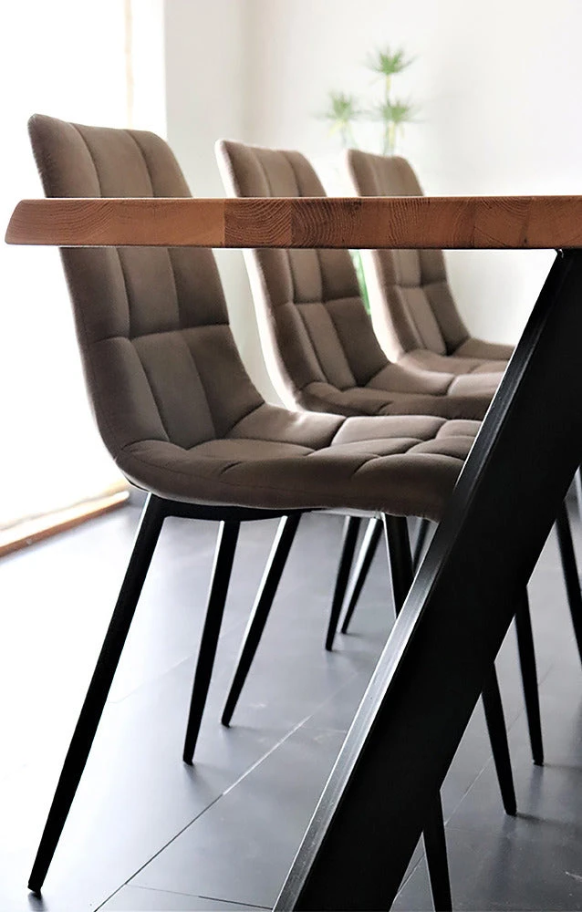 Torino-tuoli on matalaselkänojainen ja pehmeälinjainen ruokapöydän tuoli. Tuolin istuimen ja selkänojan neliskanttinen tikkauskuvio antaa sille ilmettä ja kapeat metallijalat keventävät kokonaisuutta. Verhoilukankaasta on saatavana kaksi luonnonläheistä sävyä, lämmin ruskea ja tummanharmaa.