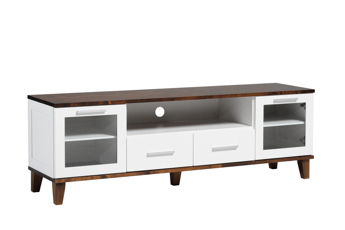 Vuokatti-sarjan leveä tv-taso on samalla niin lasiovellinen säilytysratkaisu, kuin taso televisiolle ja medialaitteille. Kahden lasiovikaapin ja kahden laatikon, sekä avohyllyn tv-tasossa on reilusti tilaa viihde-elektroniikalle. Tyylikkään tv-tason yhdistäminen muihin Vuokatti-kalusteisiin on helppoa.
